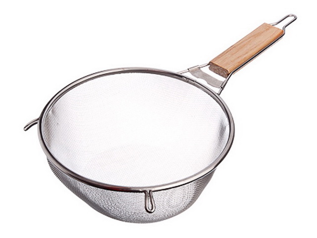 Красивое ситечко “LARA” LR03-50 довольно широкое: 21,5 см. Деревянная вставка защищает ручку от поломок и придает ей жесткость. Два ушка и удлиненный крючок служат опорами, если вы хотите поставит сито сверху кастрюли или миски. Сталь с высоким содержанием хрома не ржавеет.