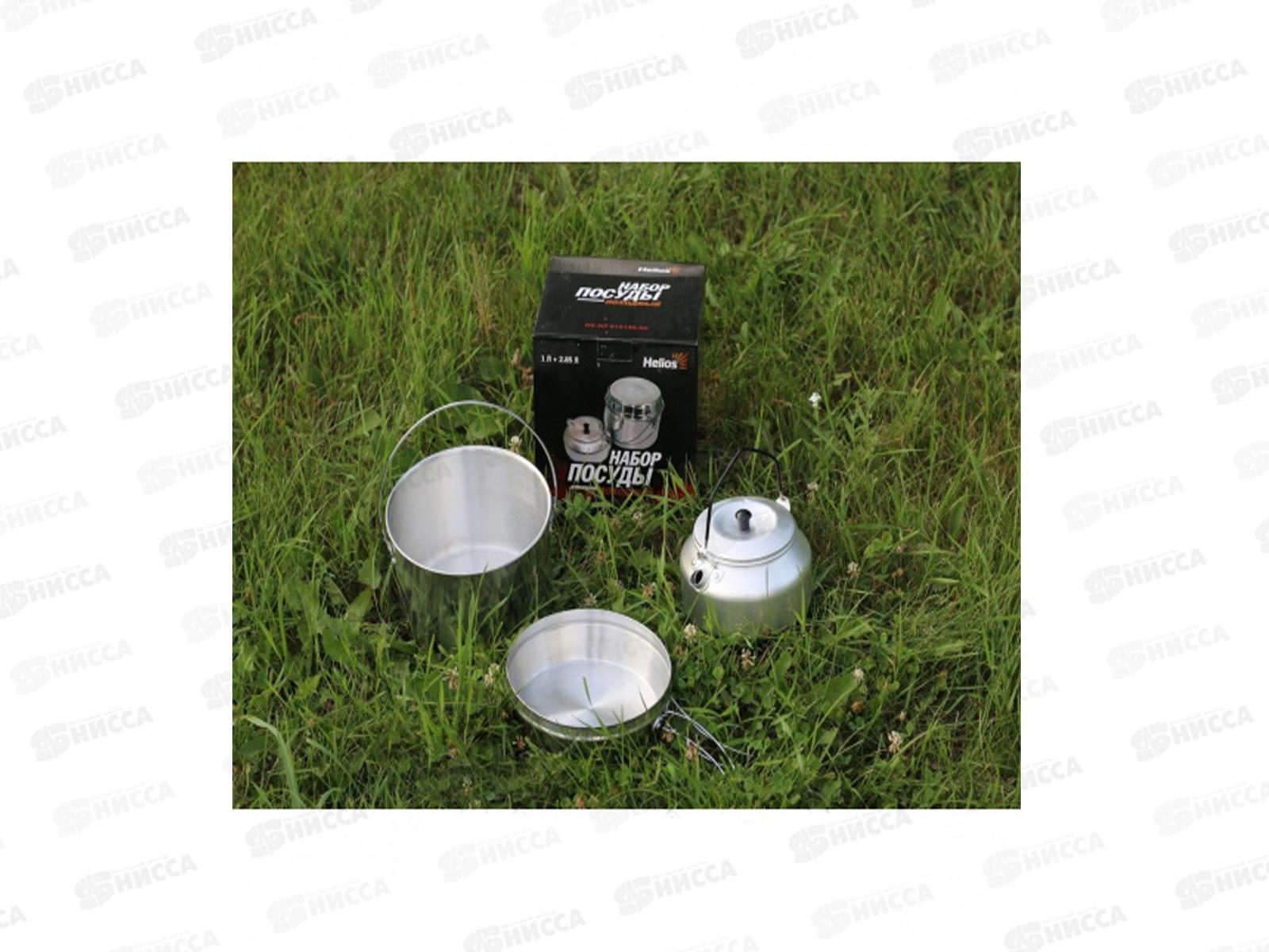 Набор посуды (HS-NP 010146-00) Helios. Компактный и удобный набор для приготовления пищи в походных условиях. Небольшие габариты и легкий вес делают набор удобным для транспортировки. Котелок, чайник и сковорода изготовлены из высококачественного алюминия, благодаря чему сочетают прочность и легкость. Комплектация: котелок (2,85 л) с крышкой-сковородой со складными ручками – 1 шт.; чайник (1,0 л) – 1 шт.