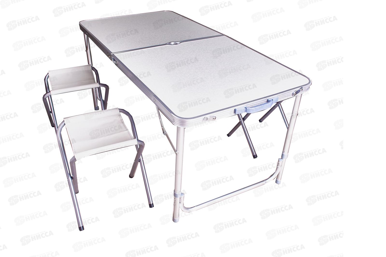 Комплект складной мебели для семейного отдыха на природе, состоящий из стола и 4-х стульев, который не займет много места в машине. В собранном виде набор не занимает много места -4 стула компактно складываются в стол, столешница складывается пополам в плоский чемоданчик с ручкой для переноски. Размер - 120х60х70 см.
