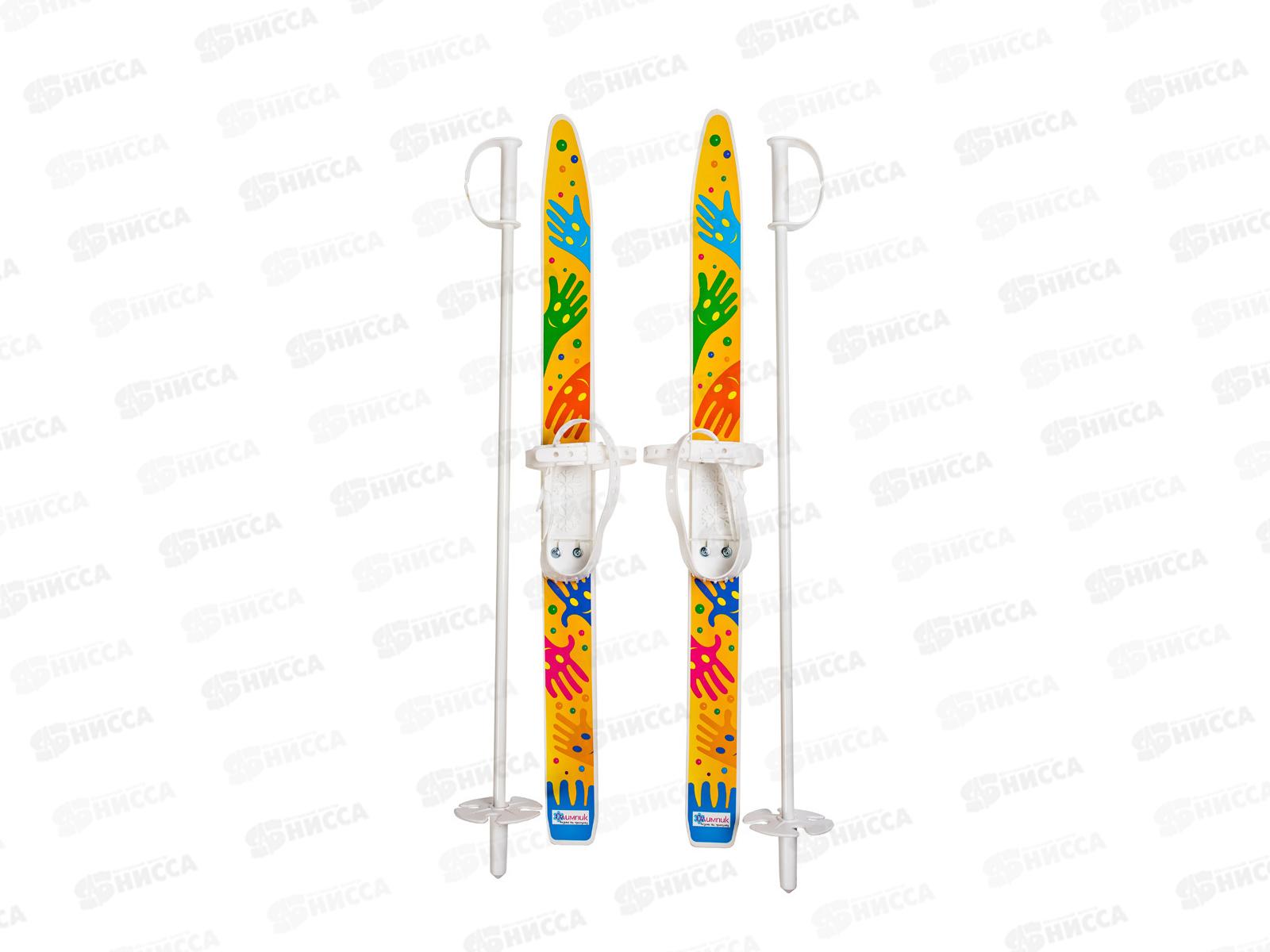 Лыжи мини "Лыжики пыжики" Ручки с палками 75/75см в/с *12