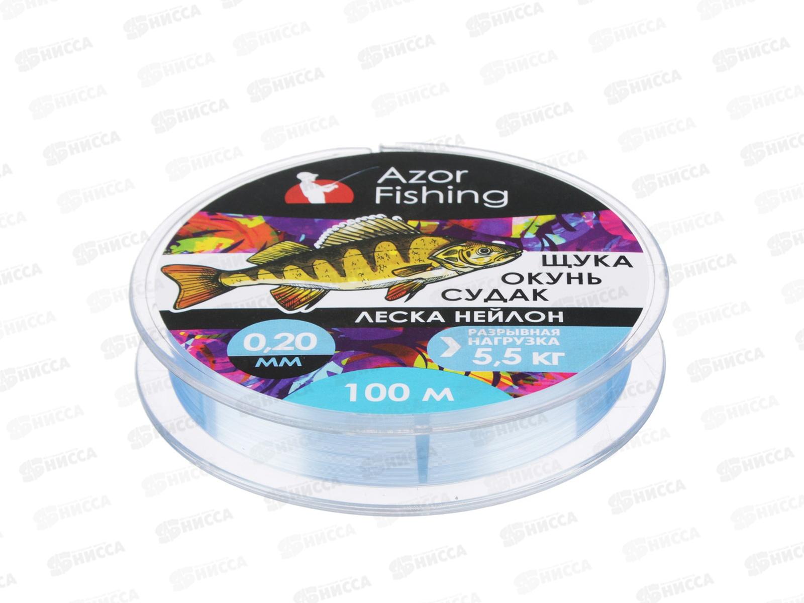 Нейлоновая леска Azor Fishing «Окунь, Судак» диаметром 0,2 мм выдерживает рыбу весом до 5,5 кг. Хороший вариант для речек богатых корягами и водорослями. Обладает отменными амортизирующими свойствами. При сильном рывке вместо того, чтобы оборваться, она растягивается. Как результат — рыбак не потеряет снасти и улов. Леска из нейлона не скручивается, не помнит прошлых намоток. Имеет средний уровень прочности. При забросе не путается. Светло-голубая нить не заметная в воде, хороша в тандеме со спиннингом и поплавочной удочкой.