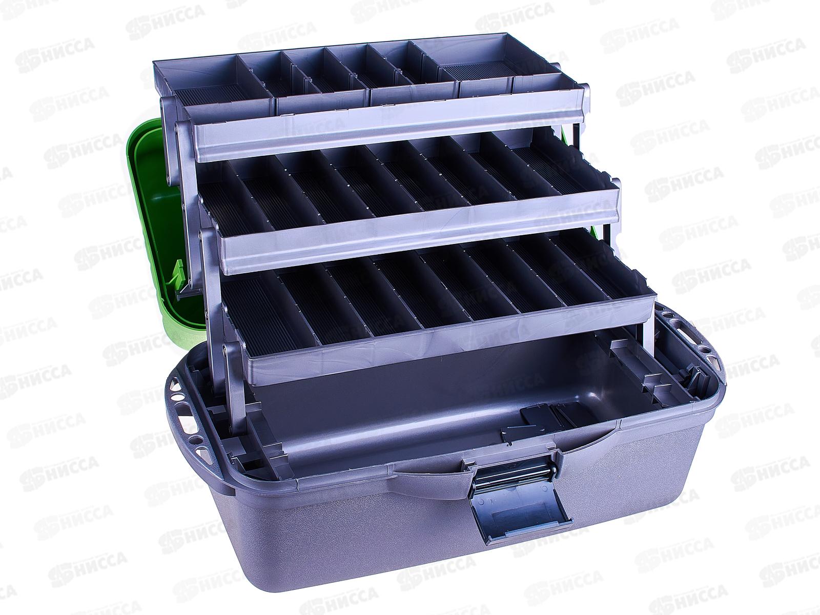 Удобный и вместительный ящик с тремя выдвижными полками для различной рыболовной оснастки: поплавков, приманок, крючков и другой полезной мелочи. Количество секций варьируется от 24 до 34. На дно ящика можно положить 1-3 спиннинговых катушек.