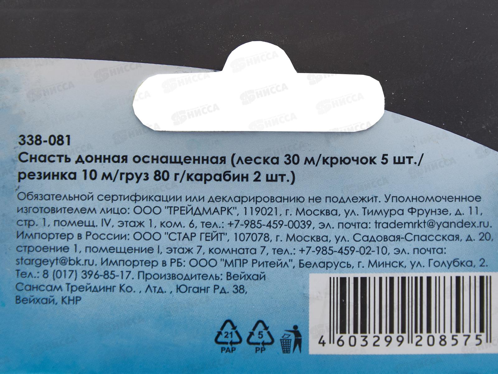 Снасть AZOR донная оснащённая (леска,крючок,резинка,груз,карабин) г