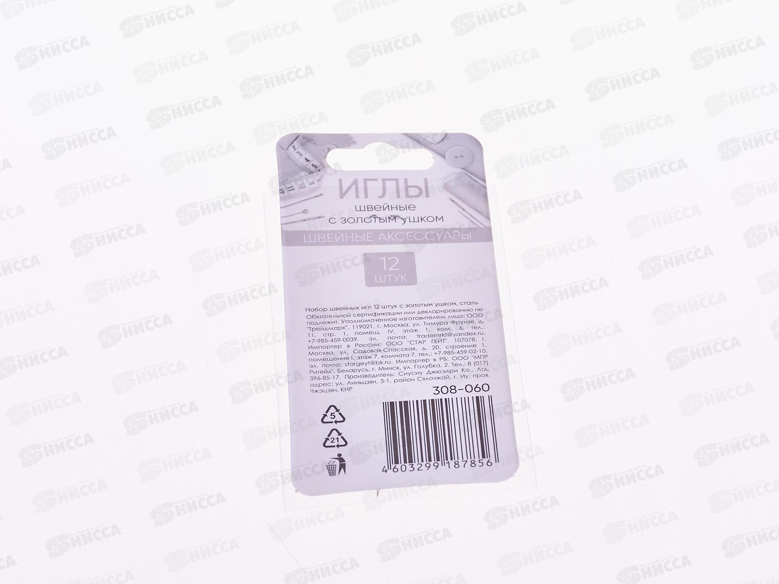 Набор швейных игл 12шт с золотым ушком, сталь 308-060 г