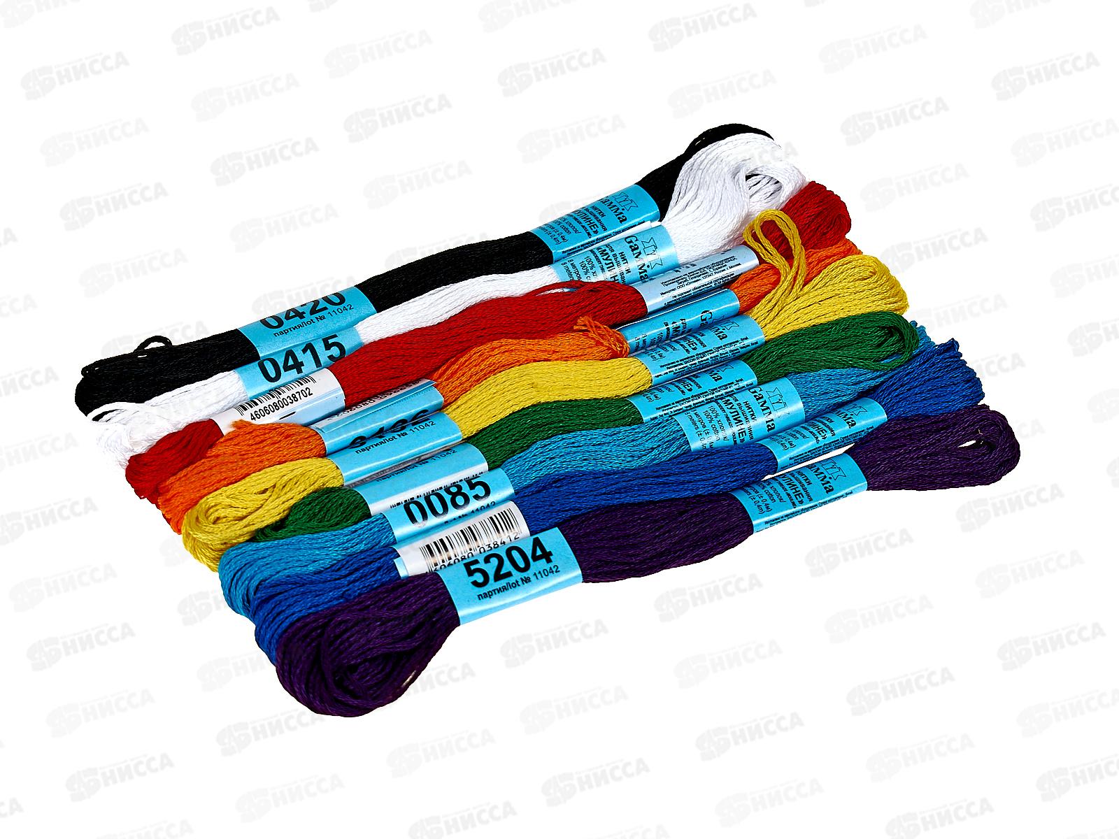Нитки мулине "Gamma" Ученический 100% хлопок 9цветов х 8м Ассорти