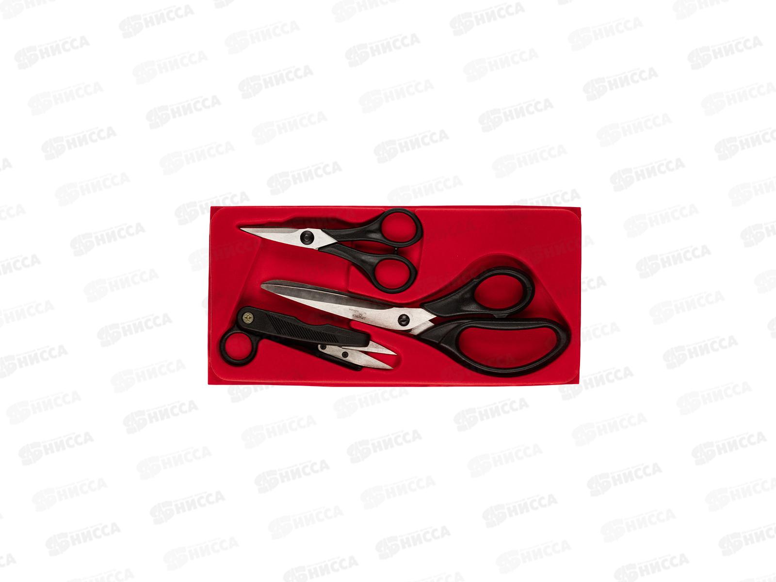 Набор состоит из: 1.Ножницы Н-065 для обрезки ниток. 2.Ножницы Н-090 для рукоделия 135 мм. 3.Ножницы Н-094 портновские 230 мм. Все ножницы изготовлены из инструментальной стали марки 40Х13. Сталь содержит хром, который препятствует образованию ржавчины, и углерод -0,40%, который придает инструменту дополнительную прочность.