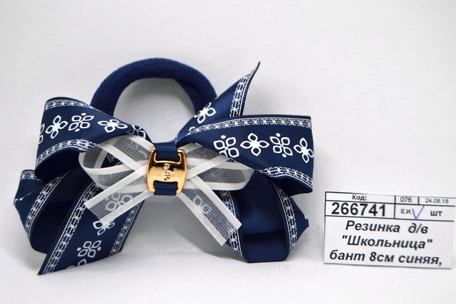 Резинка д/в "Школьница" бант 8см синяя, цв орнамент 2800024