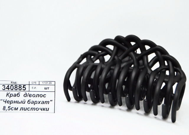 Краб для волос "Черный бархат" 8,5см листочки микс 4555276 *12