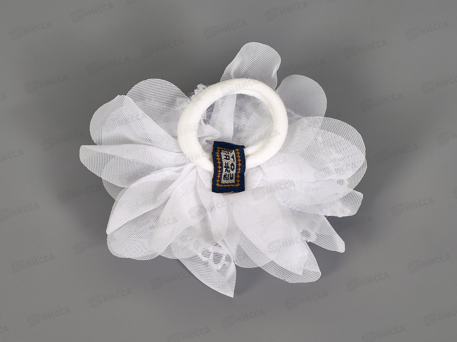 Бант гипюр, капрон белый круглый жемчуг стразы 10см №7980