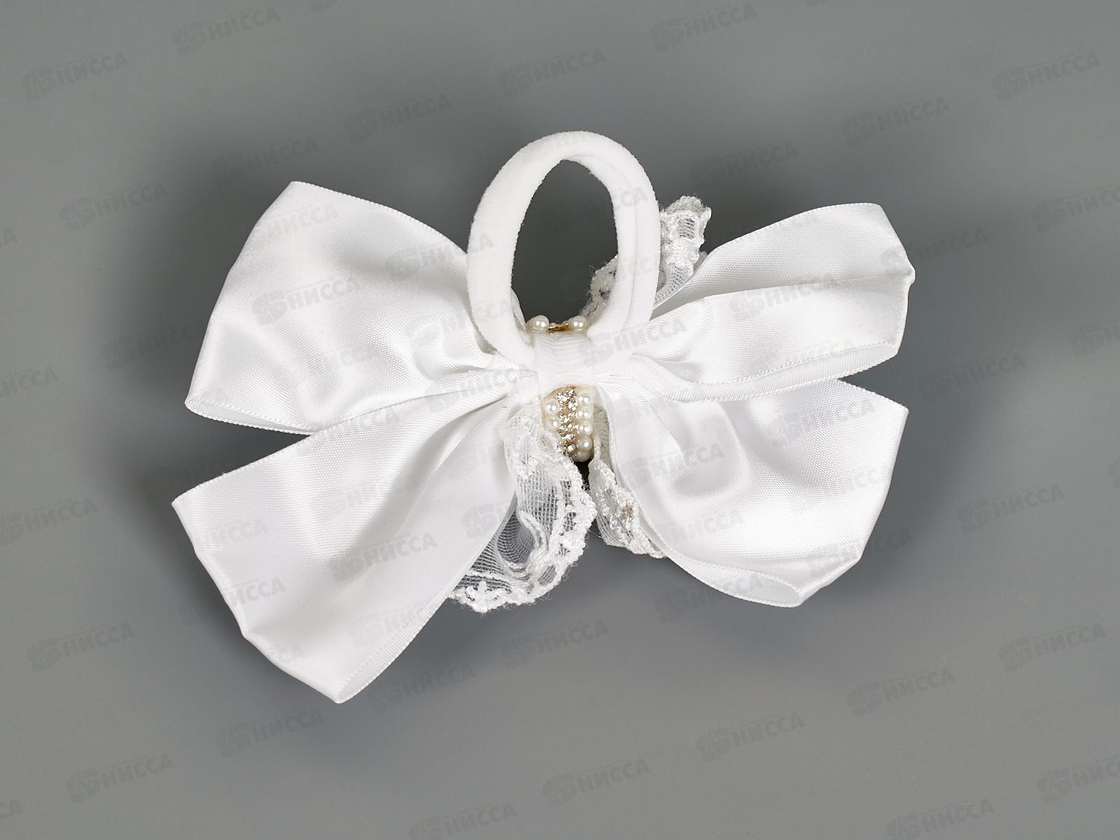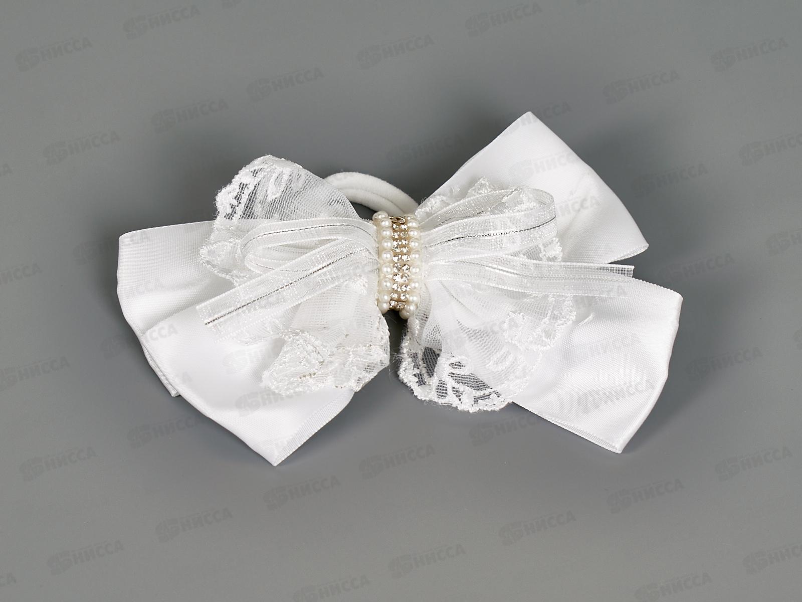 Бант шелк гипюр белый жемчуг стразы 13см №7880