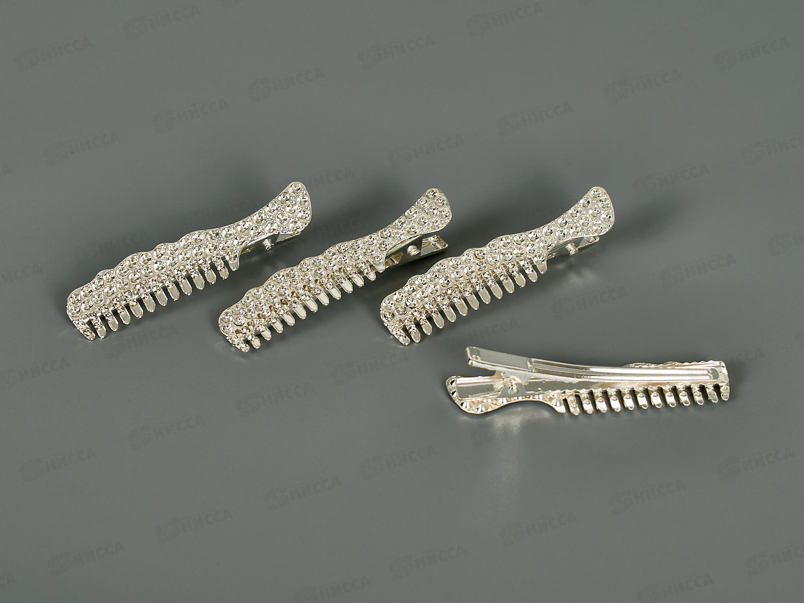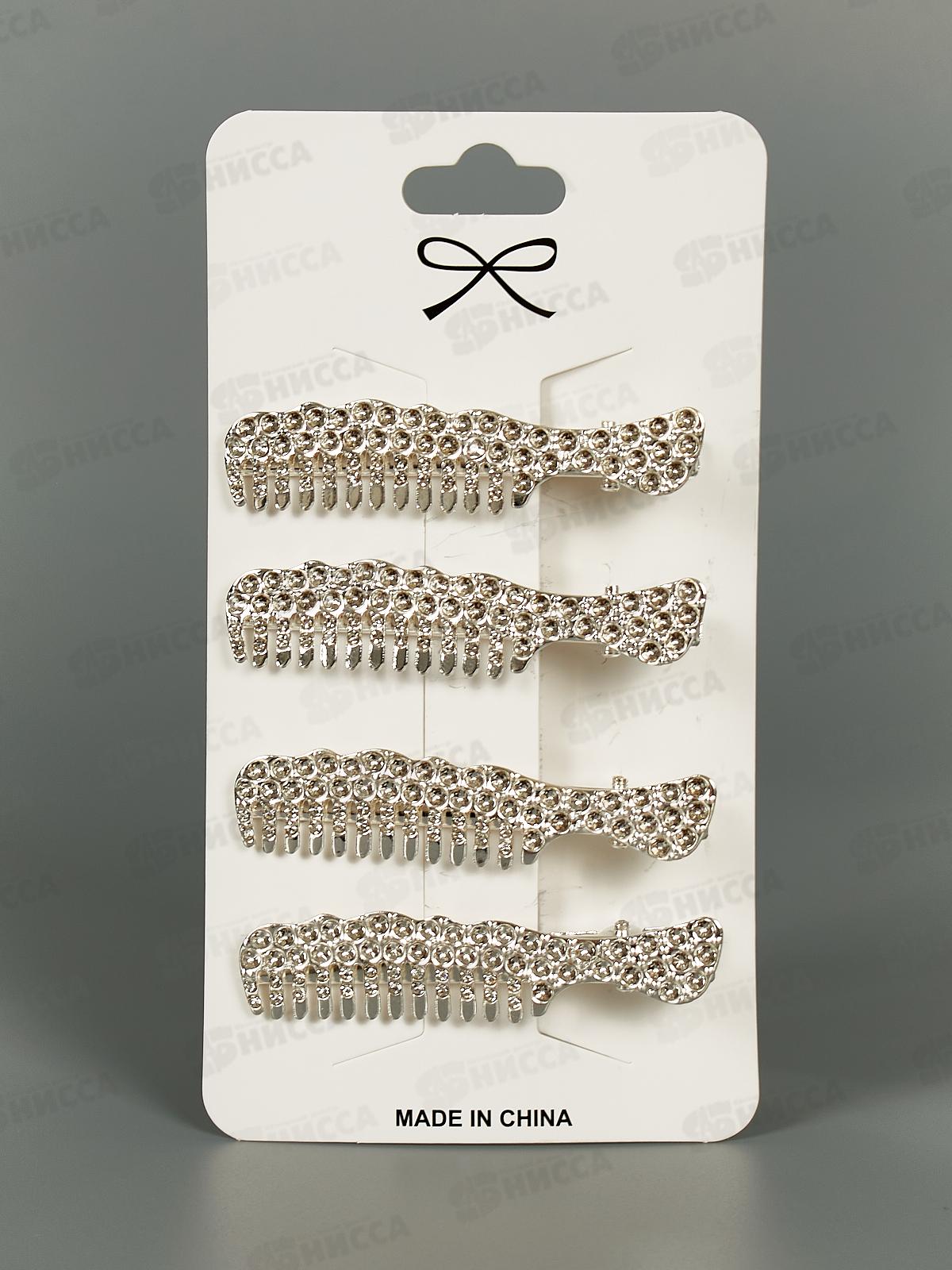 Заколка-уточка расческа 6см со стразами №2871 (уп 4шт)
