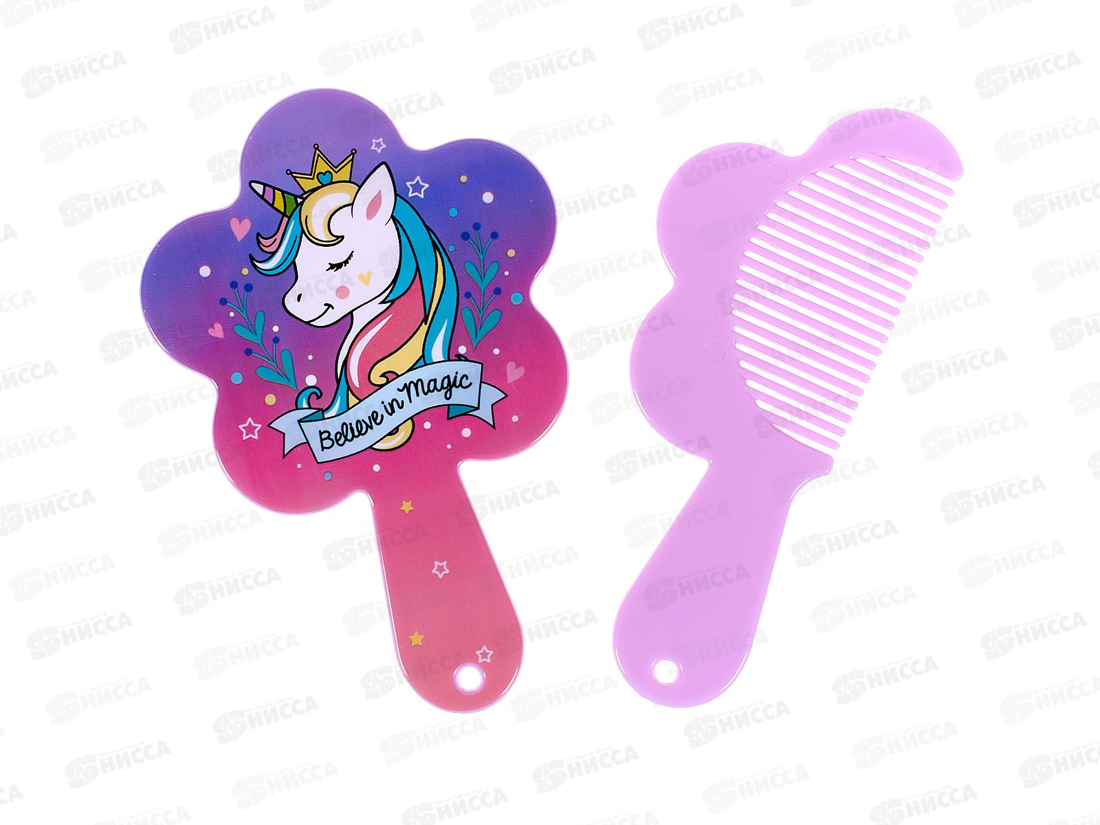 Расческа "МИМИШКИ" с зеркалом единорог роз-фиол 11см 663--047