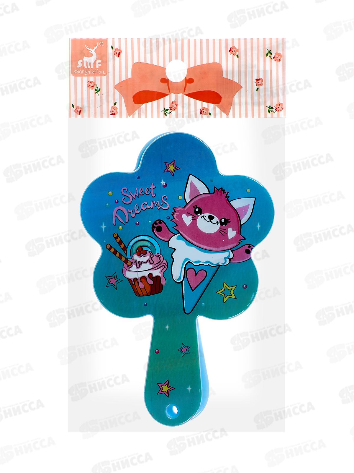 Расческа "МИМИШКИ" с зеркалом котик лазурный 11см 663--044