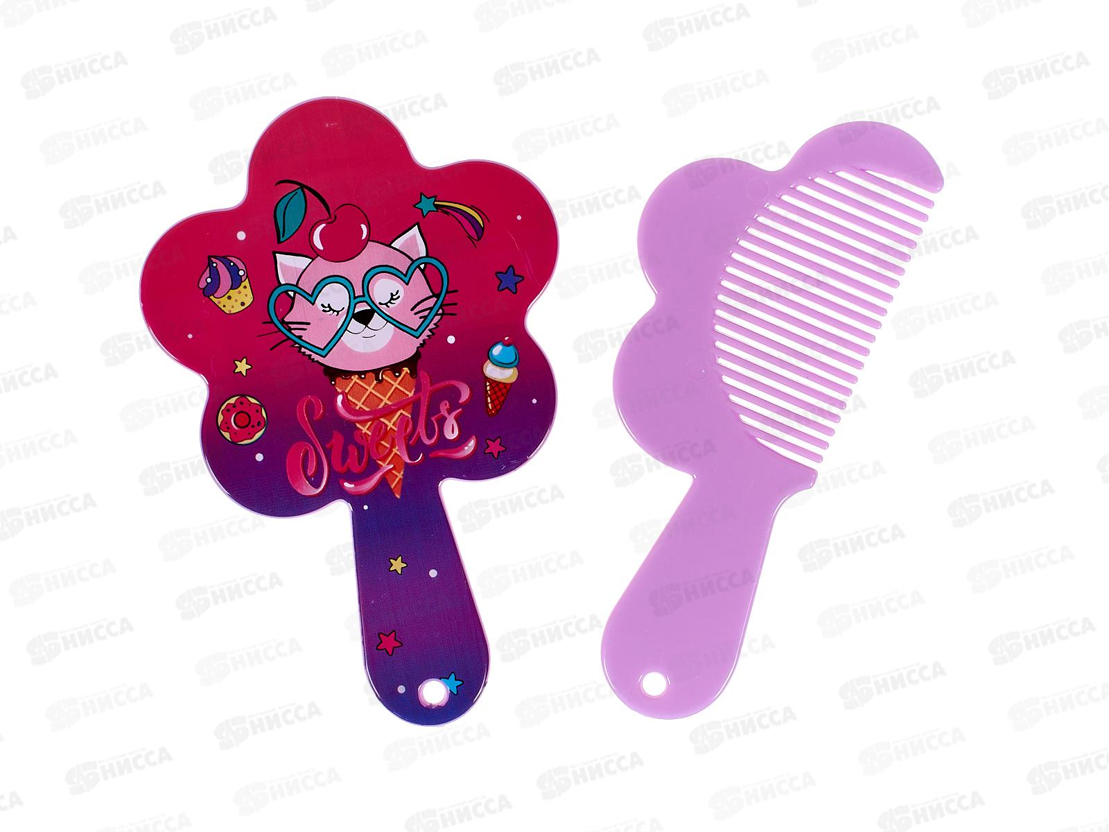 Расческа "МИМИШКИ" с зеркалом котик роз-фиол 11см 663--045