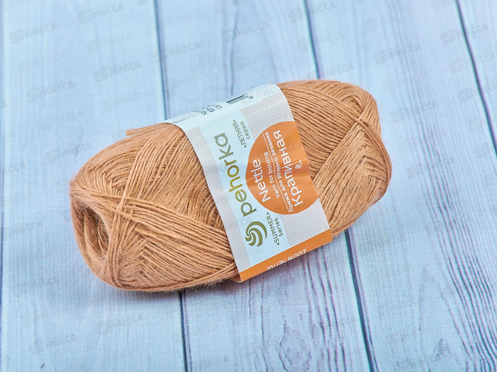 Натуральная пряжа с уникальным составом. Пряжа произведена из 100% крапивного волокна. Применение новейших технологий позволило сохранить в пряже лечебные свойства крапивы. Как известно, крапива облегчает проявления ревматизма, снимает приступы мигрени, улучшает кровообращение. По структуре волокно крапивы полое, поэтому пряжа обладает особенным свойством согревать в холода и охлаждать в жару. Нить тонкая, состоит из нескольких ниточек, слабой скрутки. Вязаное полотно получается легким и мягким, слегка пушистым. Для вязания рекомендуется использовать спицы 2мм.