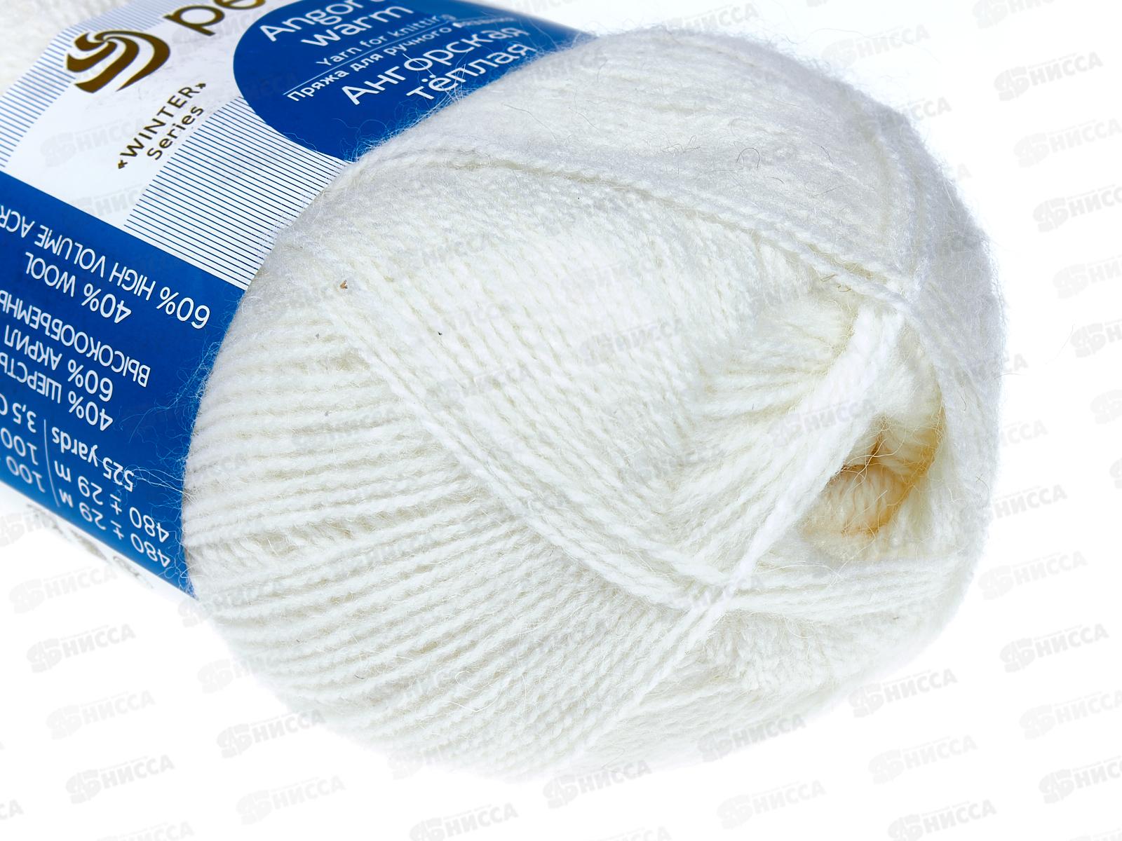 Пряжа Ангорская теплая 01 белый 100г480м шерсть40% акрил60%