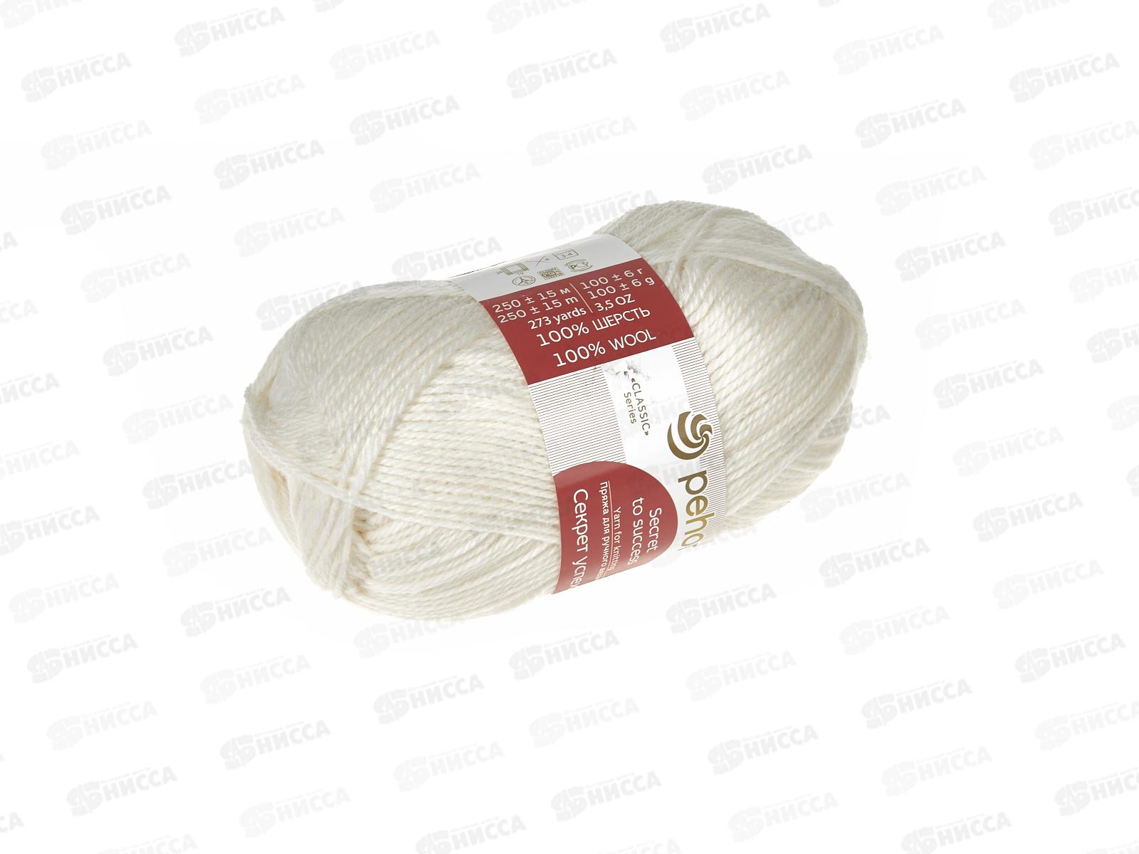 Пряжа Секрет успеха 01 Белый шерсть100% 100гр