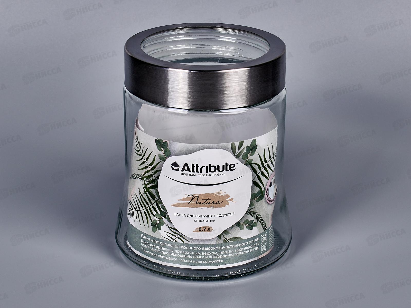 Банка стеклянная с прозрачной крышкой, 700 мл, Attribute Natura, AJN007. Банка изготовлена из высококачественного стекла. Емкость подходит для хранения сыпучих продуктов: круп, специй, сахара, соли. Она снабжена металлической крышкой, которая плотно и герметично закрывается, дольше сохраняя аромат и свежесть содержимого.