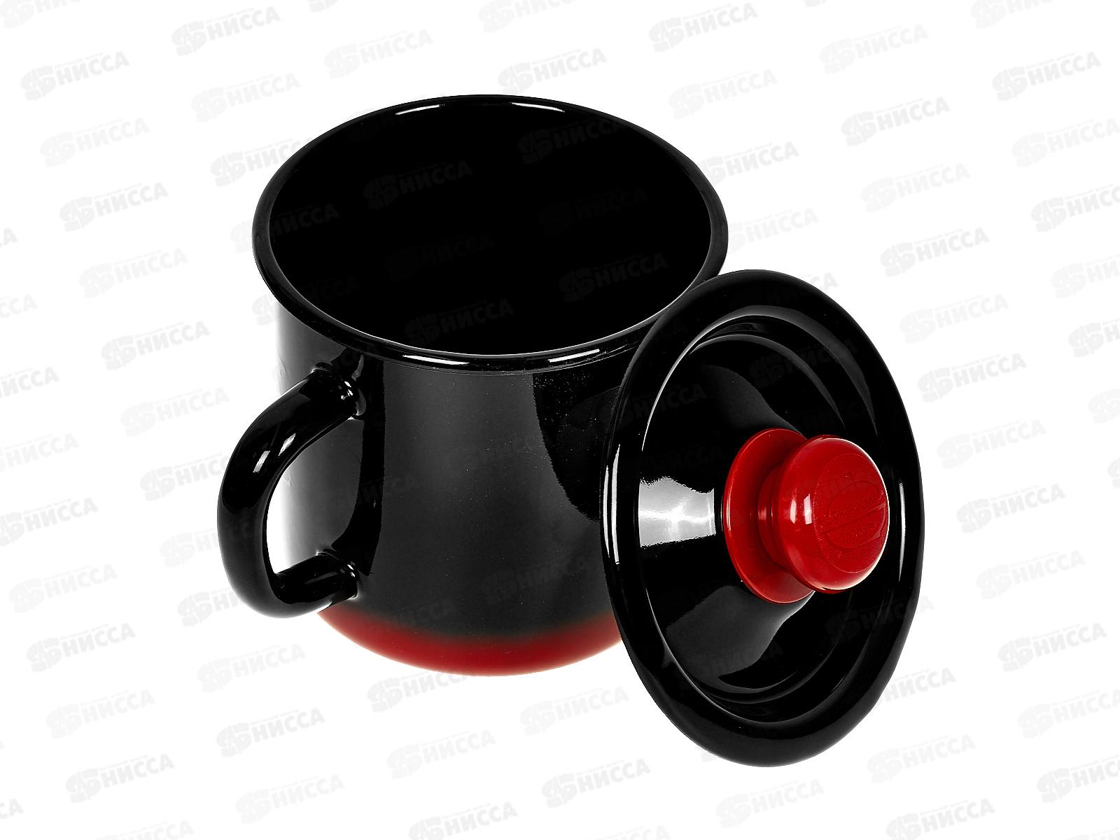 Кружка 1,0л с крышкой декорированная красно-черная С0207.38 *8