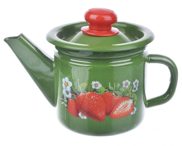 Чайник заварн 1л Клубника садовая,зел рябс пластм.кнопкой С2707.3з*59