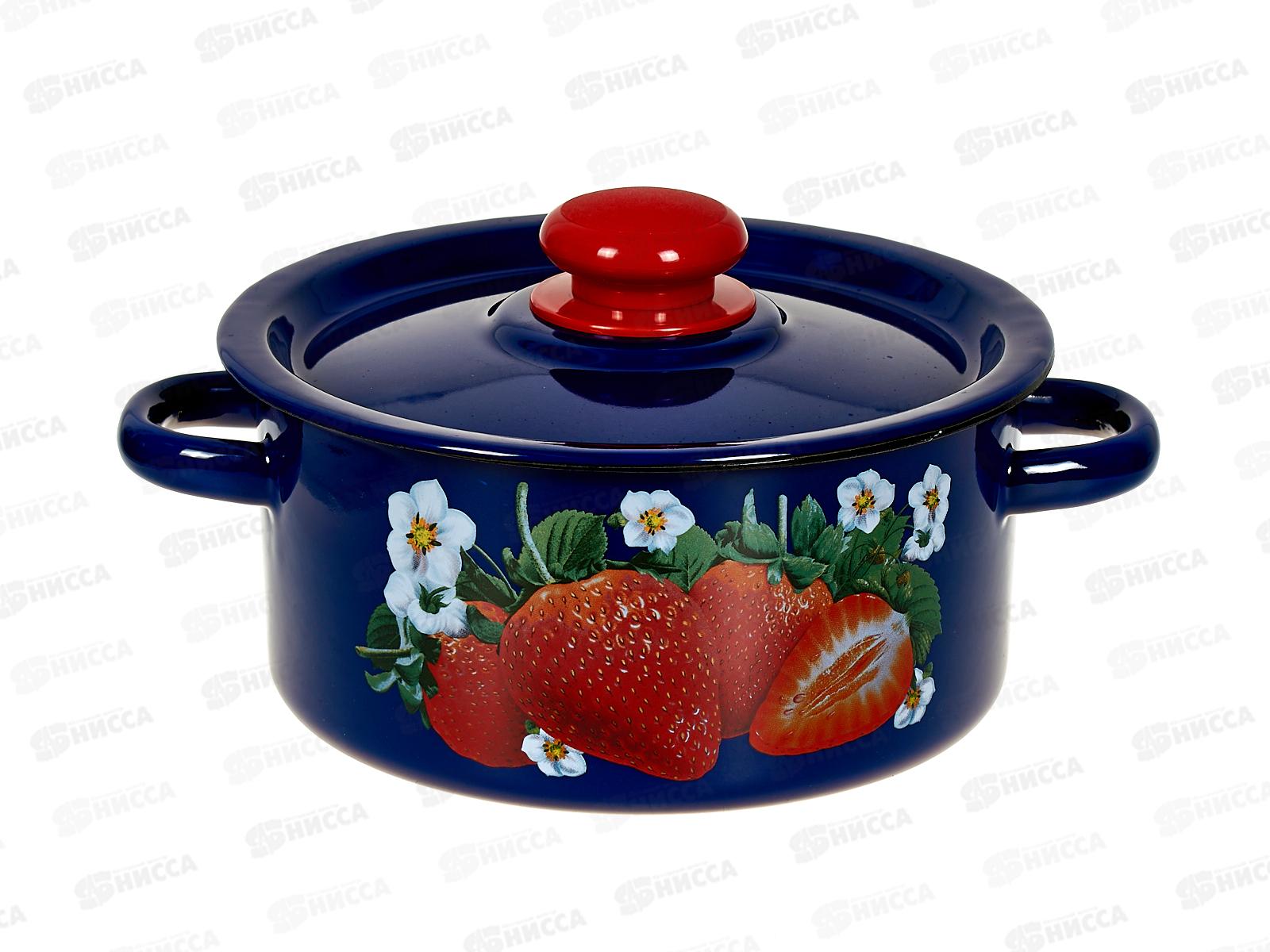 Кастрюля 2,0л цилиндрическая Клубника садовая цвет кобальт с пластмассовой кнопкойС1610.3К*59