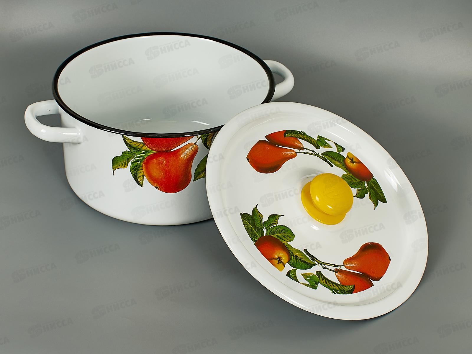 Кастрюля 5,5л широкая декор белая с деколью на крышке С16117.39