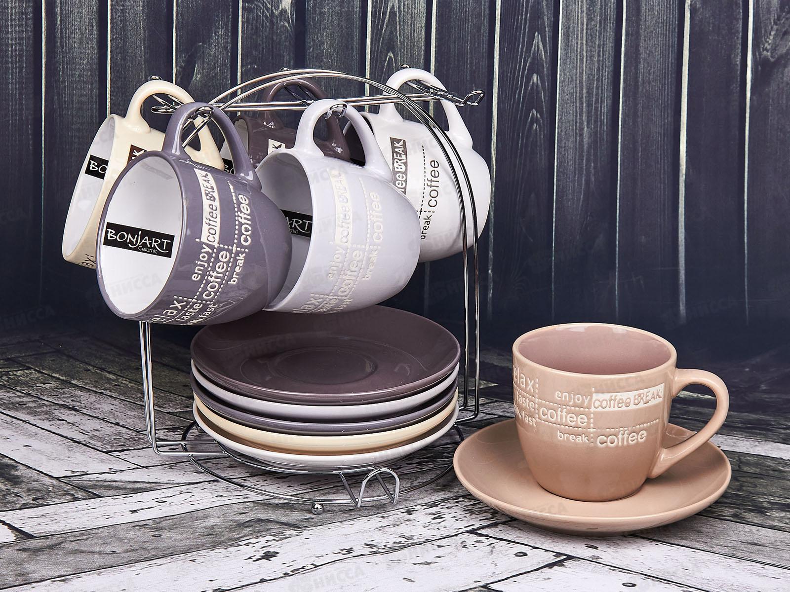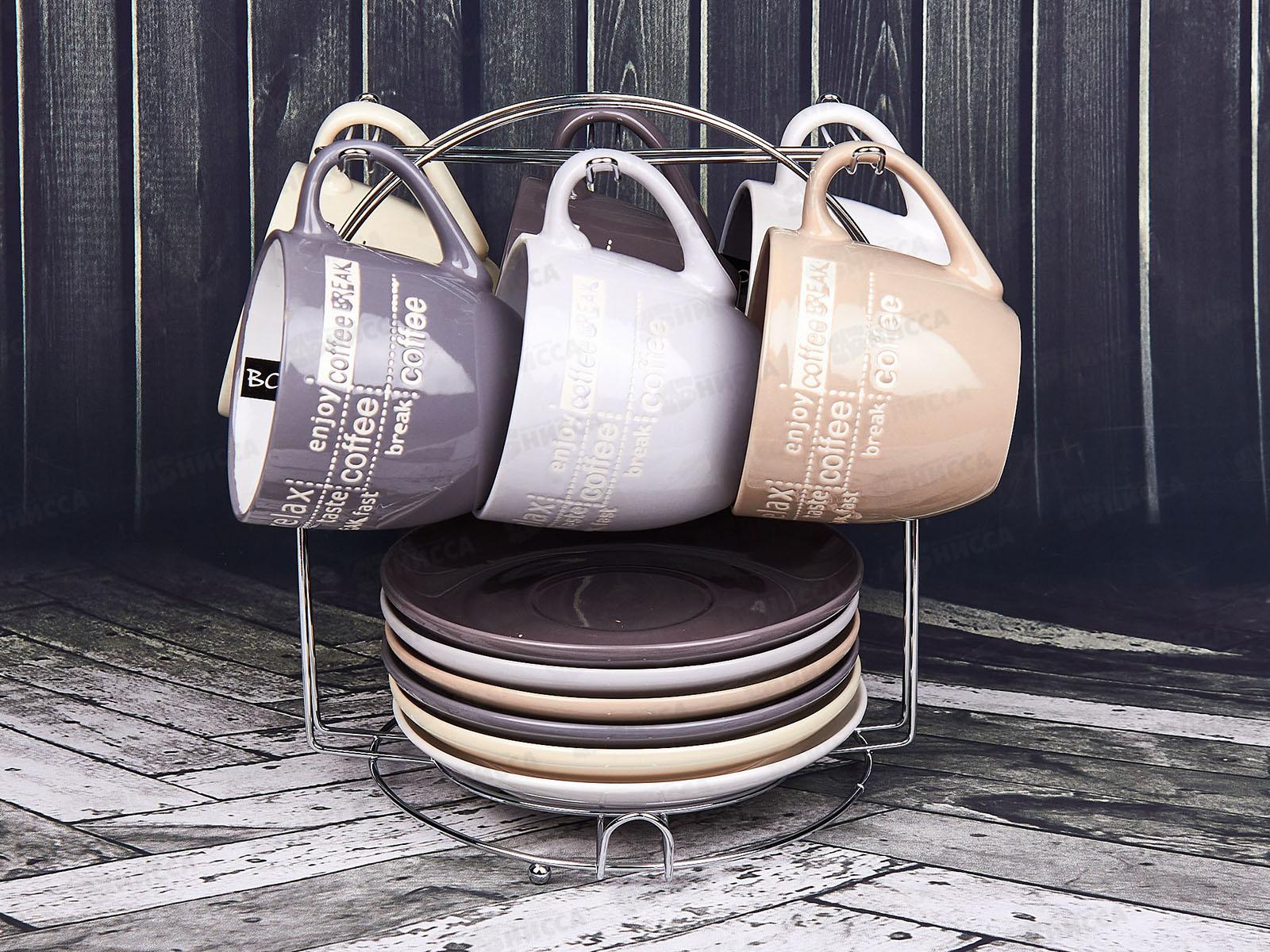 Комплектация: 12 предметов (6 чашек, 6 блюдец, стенд)