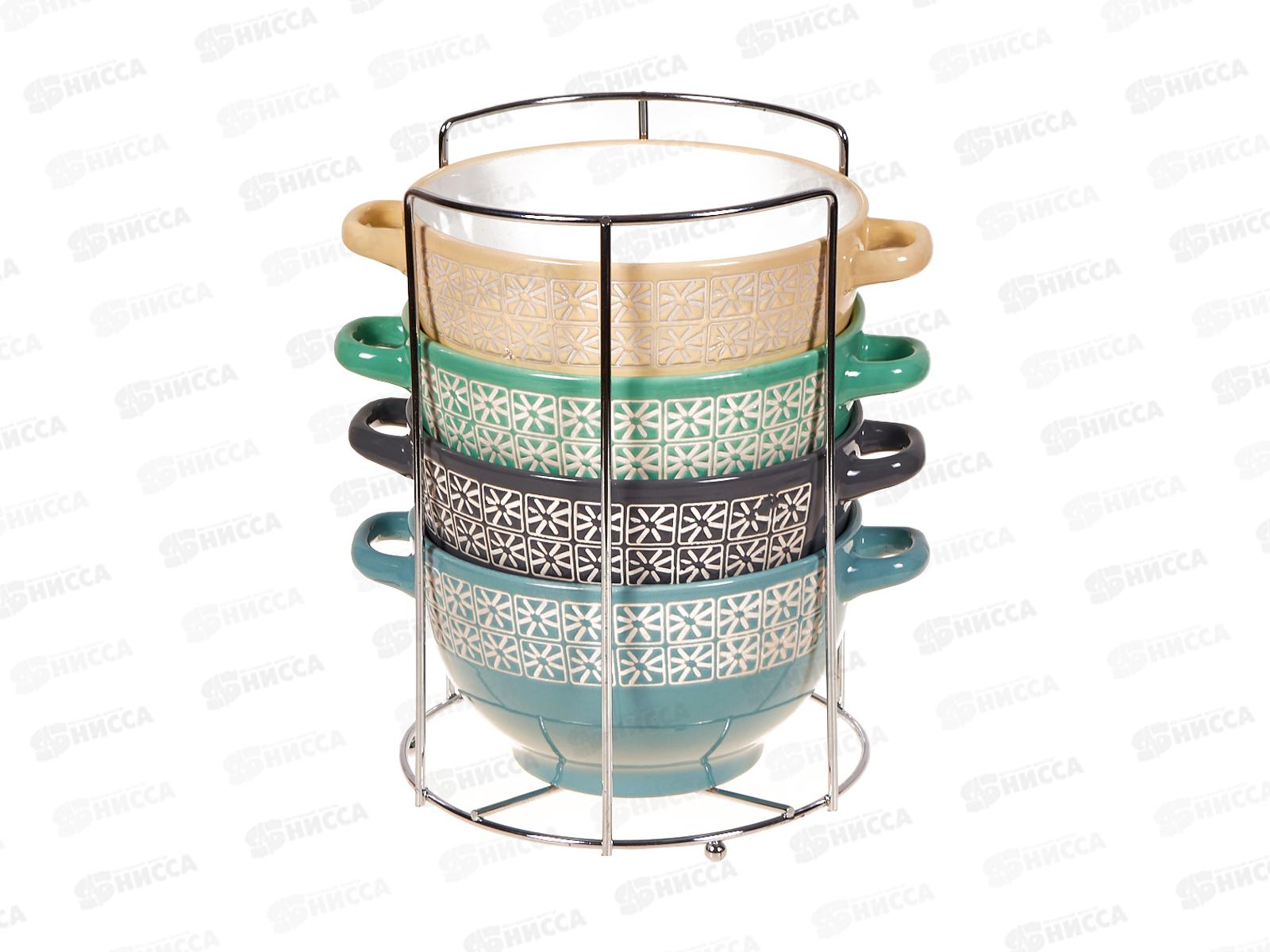 Состав набора: бульонница 4 шт, подставка 1 шт