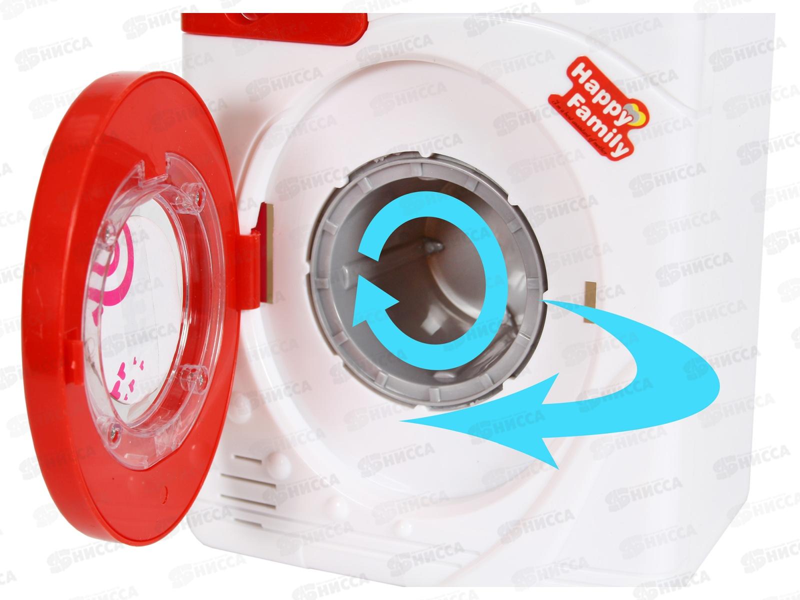 Эта стиральная машинка выглядит совсем как настоящий бытовой прибор.Обладает эффектами света и звука, благодаря чему имитирует функции, характерные для работы настоящей стиральной машинки. Она оснащена дверцей с прозрачным стеклышком, которая позволяет наблюдать за процессом стирки.
