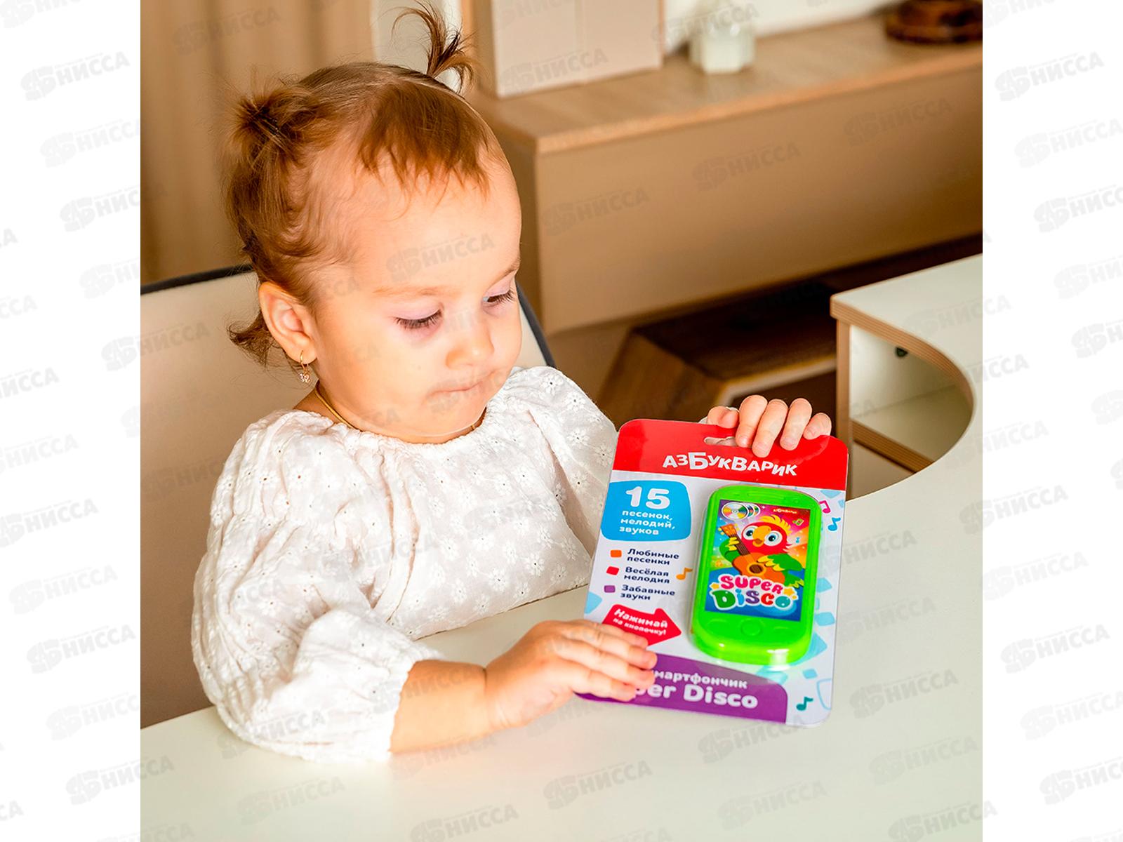 Игрушечный телефон "Super Disco" понравится каждому малышу. Ведь этот смартфончик знает 15 веселых песенок, а попугай на дисплее сделает игры ещё интереснее! Как только малыш нажмет на кнопочку, он сможет послушать 15 разных мелодий, песен и звуков. Вместе с этой музыкальной игрушкой малыш споет и запомнит следующие детские хиты: "Чунга-чанга", "Арам зам зам", "Весёлая карусель", "Догони", "С днём рожденья тебя!" и другие. Мини-смартфон помогает ребенку развить память и музыкальный слух. К тому же игрушечный телефончик так похож на настоящий смартфон. На яркую кнопочку захочется нажимать снова и снова. Игрушка идеально подойдет для маленьких ручек благодаря небольшому размеру и закруглённым уголкам. Мини - смартфончик способствует речевому развитию ребенка, формирует коммуникативные способности, а также положительно влияет на развитие мелкой моторики! И, конечно, игрушка стимулирует двигательную активность, что очень полезно в детском возрасте для развития мышц и умственных способностей.