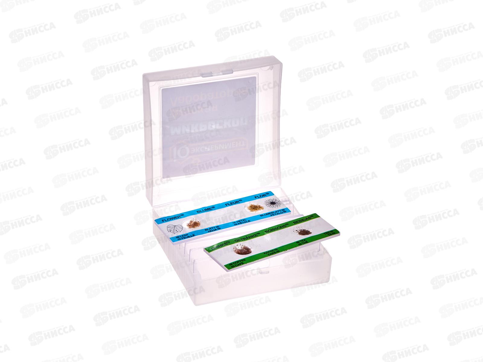 Комплектация: микроскоп, 8 предметных стекол, коробочка