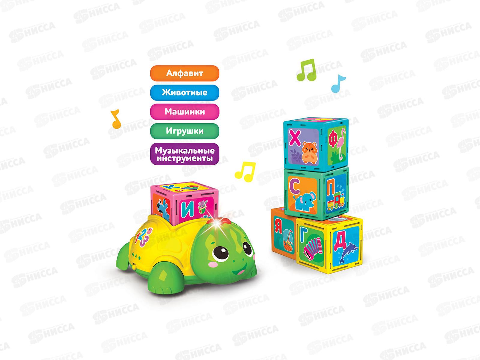 Умная черепашка при помощи 5 обучающих кубиков поможет малышу выучить буквы! Нужно просто вставить кубик и нажать! В игрушке – 30 говорящих картинок, 4 режима («Буквы и слова», «Звуки», «Песенки», «Игры»), а также мигающие огоньки и 10 песенок («Песенка про алфавит», «Песенка про счёт», «Песенка про цвета», «Песенка про формы», «Весёлые противоположности», «Это что за чудеса», «Выходите погулять», «Пляшут весело детишки», «Что такое праздник», «Друзья»). А еще с помощью кубиков ребенок сможет сам составлять слоги и слова. Такая игра поможет закрепить знания и развить навыки чтения.