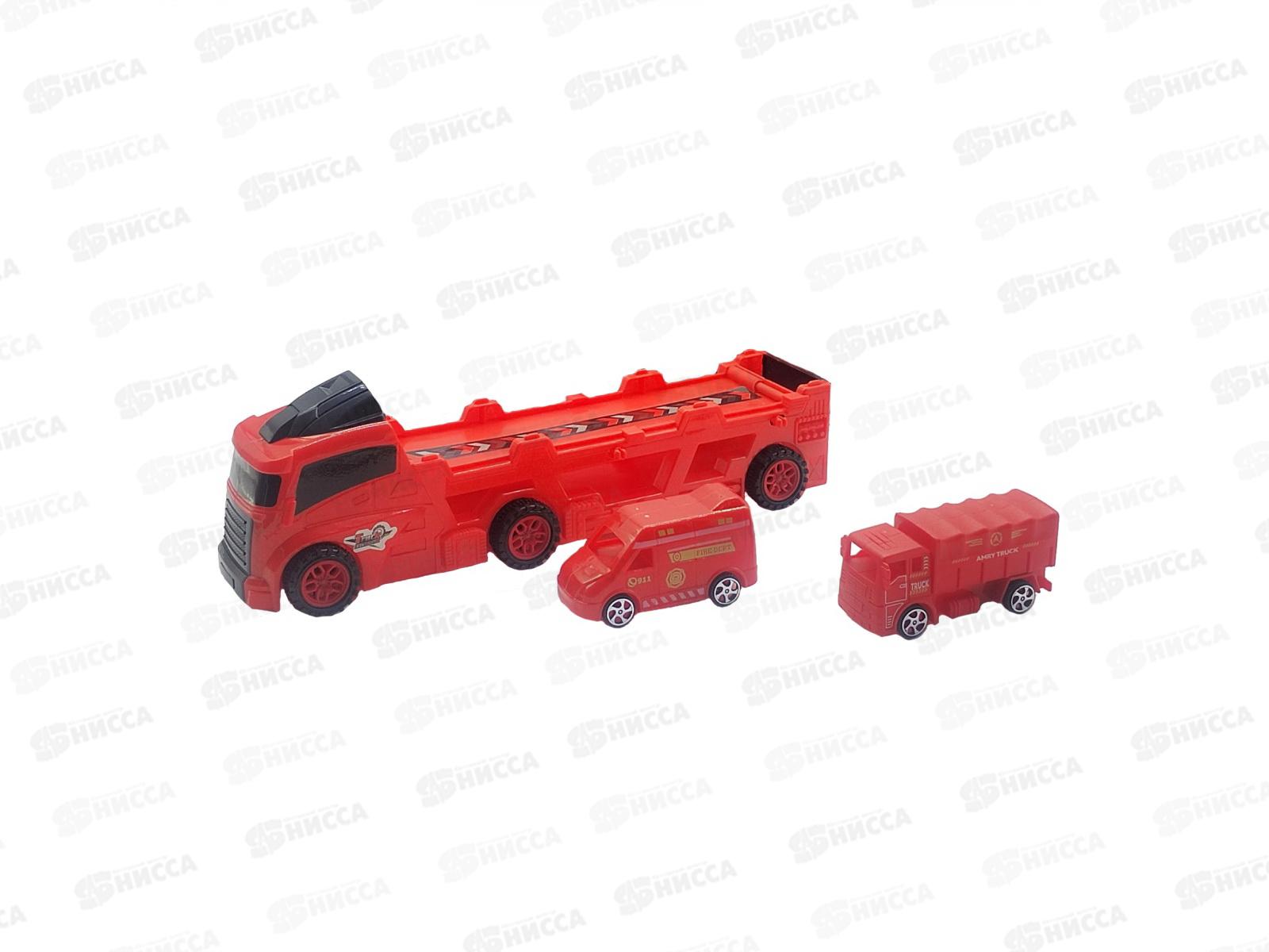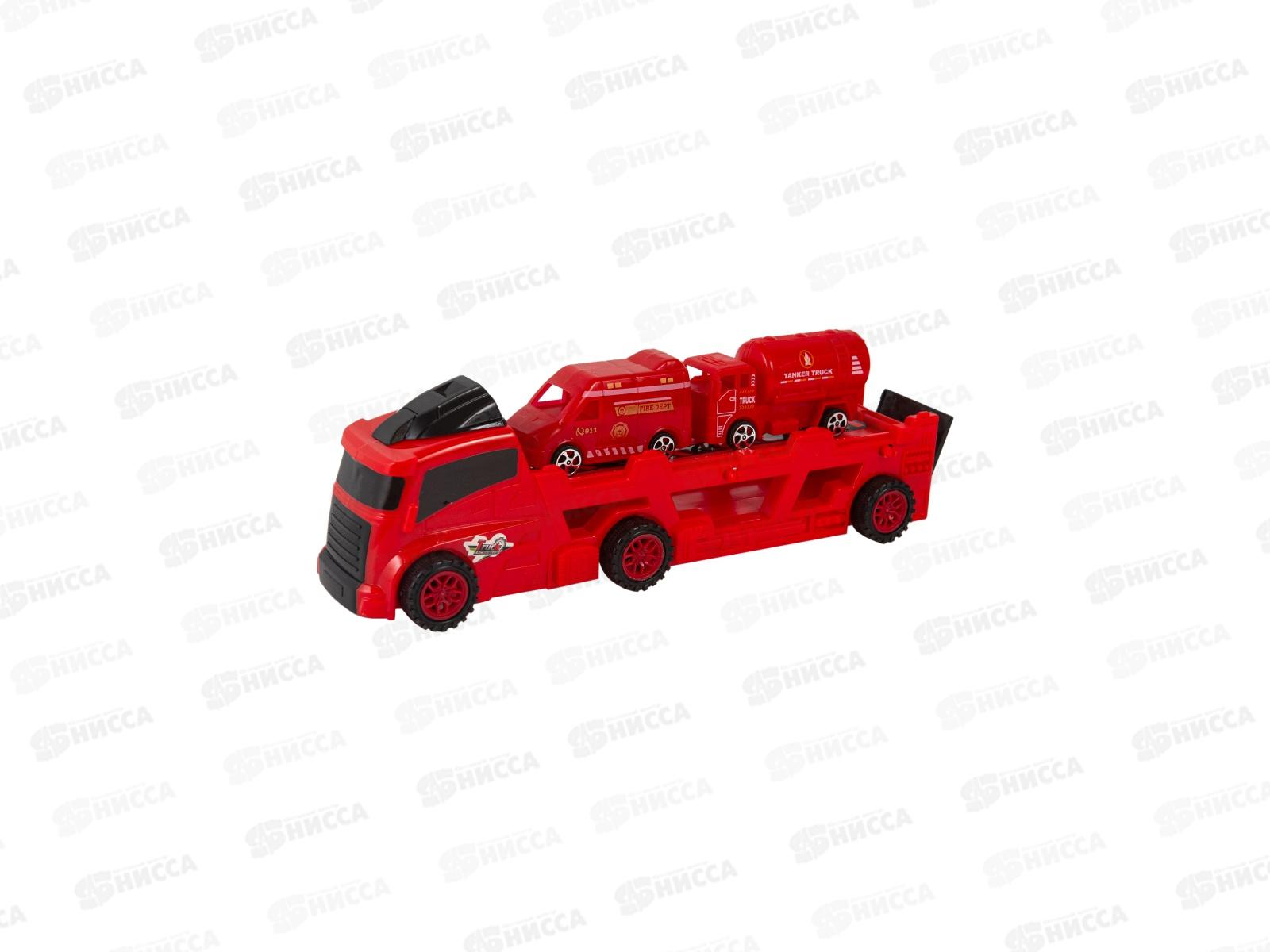 Игрушка Грузовик со спецтехникой. Серия: "Автовозы. Крутые перевозчики". Состав: автовоз - 1 шт., спецтехника - 2 шт. (фургон и грузовик в ассортименте).  Особенности: открывающаяся задняя дверь у автовоза, инерционный механизм у спецтехники для езды.