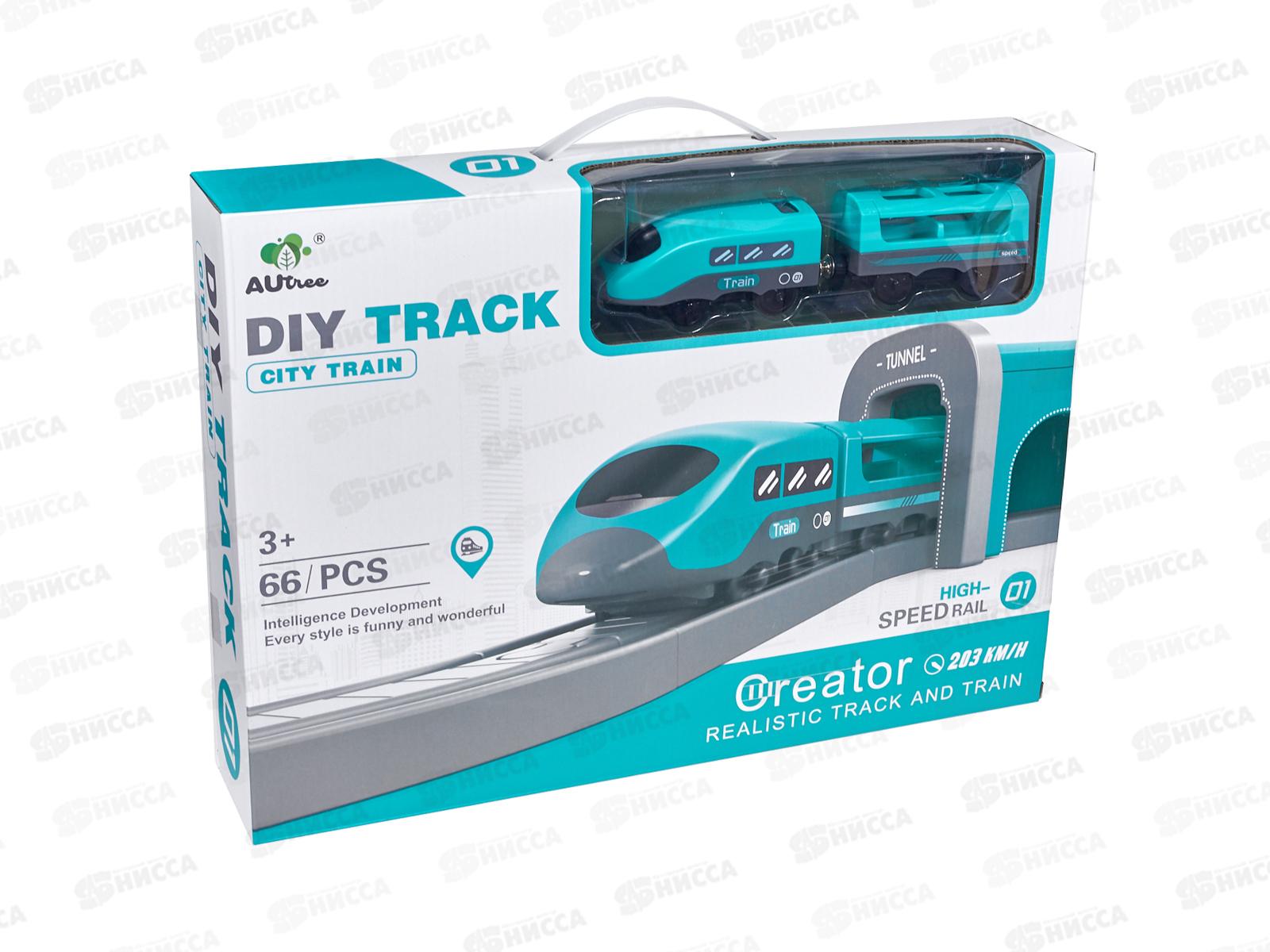 Комплектация: локомотив - 1 шт, вагон - 1 шт, машина - 2 шт, фигурка, детали для сборки железной дороги (сегменты дороги, мост, опоры, тоннель), декорации (макет магазина из картона, дорожные знаки, фонарь, светофор, деревья, наклейки)