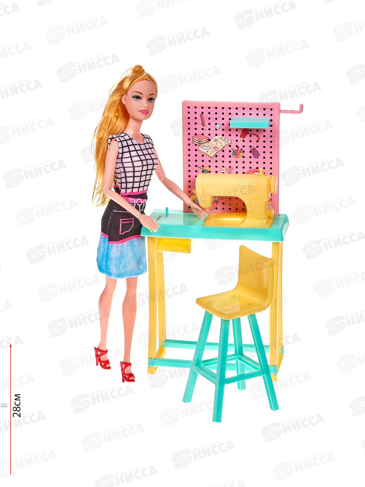 Эта кукла обожает придумывать красивые наряды и мечтает стать модельером! В комплекте вместе с куколкой прилагается рабочий стол со швейной машинкой, стул, сопутствующие аксессуары, в том числе ножницы, плечики, «катушки» ниток. Размер столика со швейной машинкой (ДxШxВ): 12,5x5,5x25,5 см. У куколки шарнирные ручки – всего 4 точки артикуляции.