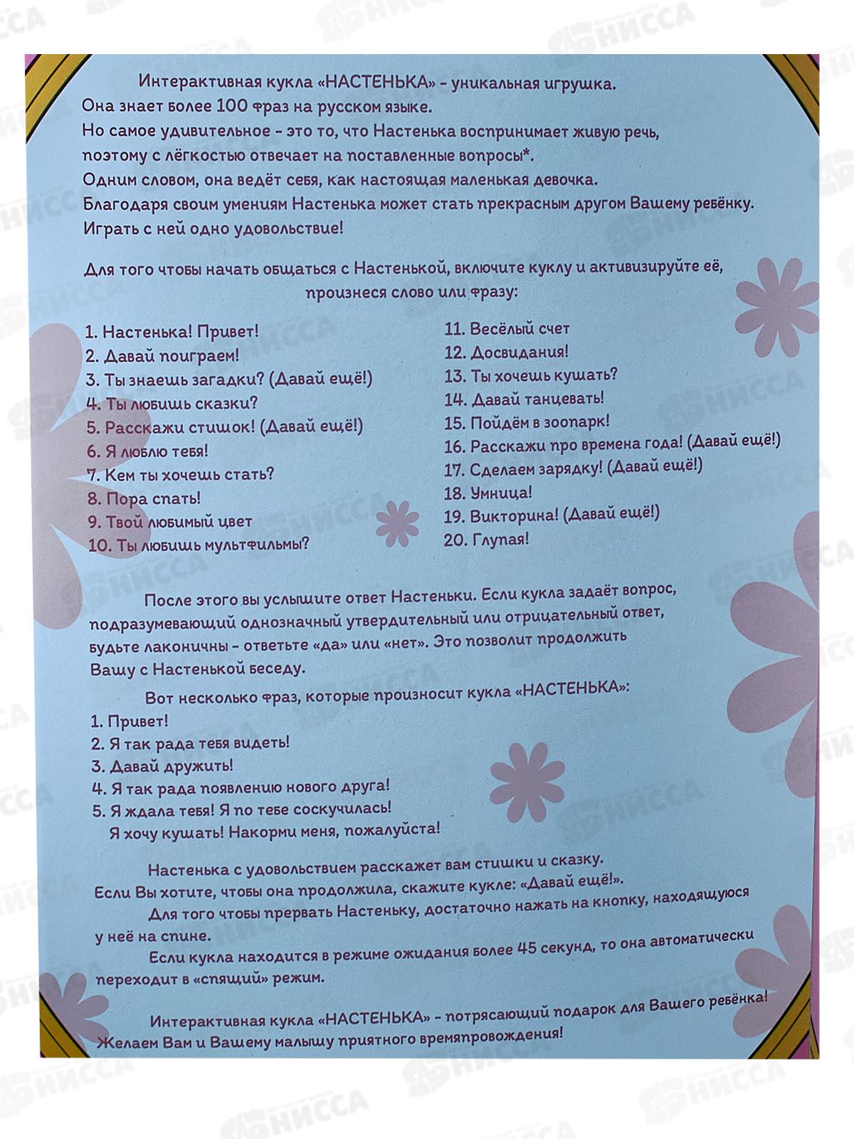 Кукла интерактивная "Настенька" 527130R рассказывает сказки в/к