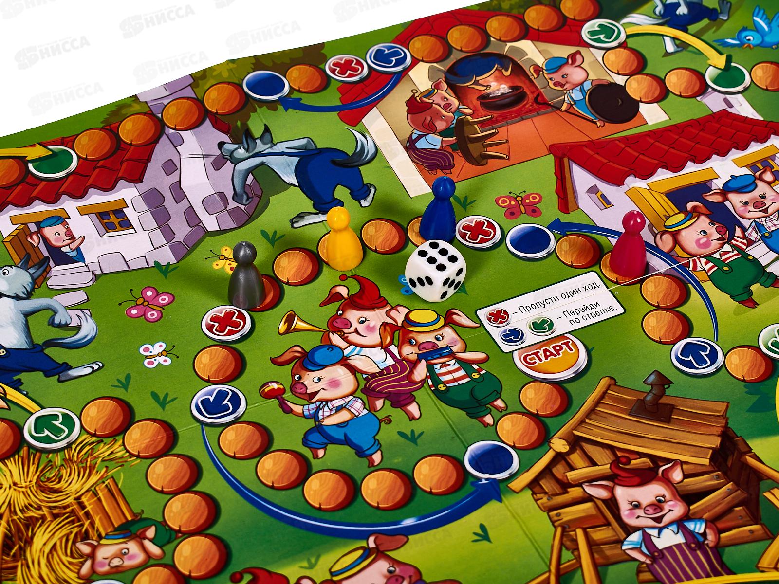 Эта увлекательная настольная ходилка поможет детям полностью погрузиться в волшебную историю "Три поросенка". Ребятам предстоит передвигать фишки по клеткам на специальном игровом поле, которое украшено иллюстрациями из известной сказки и представляет собой участки из различных эпизодов истории. Красочная и яркая ходилка с веселыми заданиями и героями любимой сказки - прекрасный способ весело и с пользой провести время с друзьями и в кругу семьи. Красивые иллюстрации привлекут внимание ребенка. Оригинальная настольнгая игра поможет весело и интересно провести время. В процессе игры дети смогут научиться считать - в этом им поможет игральный кубик и перемещение по игровому полю.