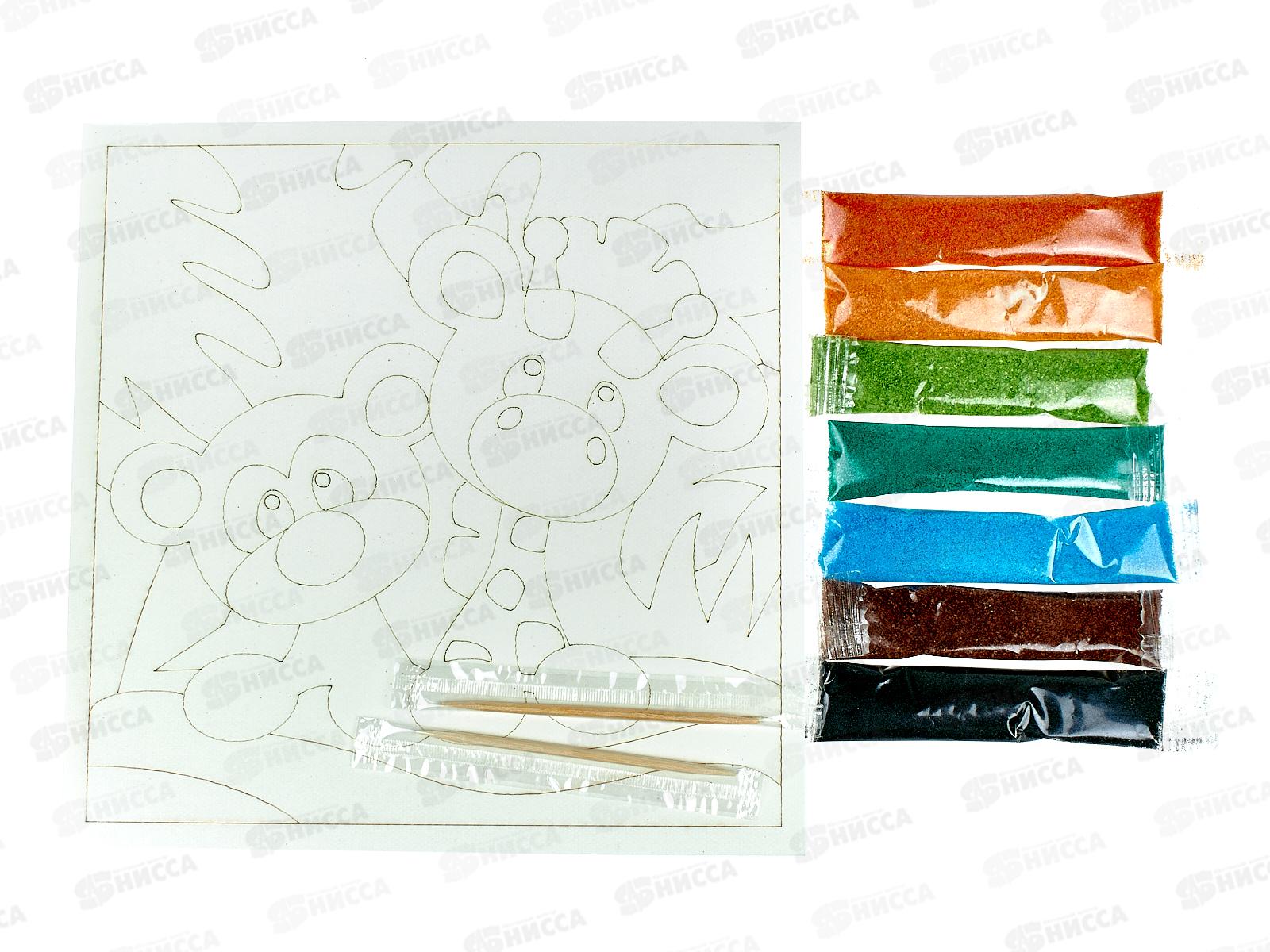 Фреска из цветного песка "Жираф и мишка" в конверте С1790 *40