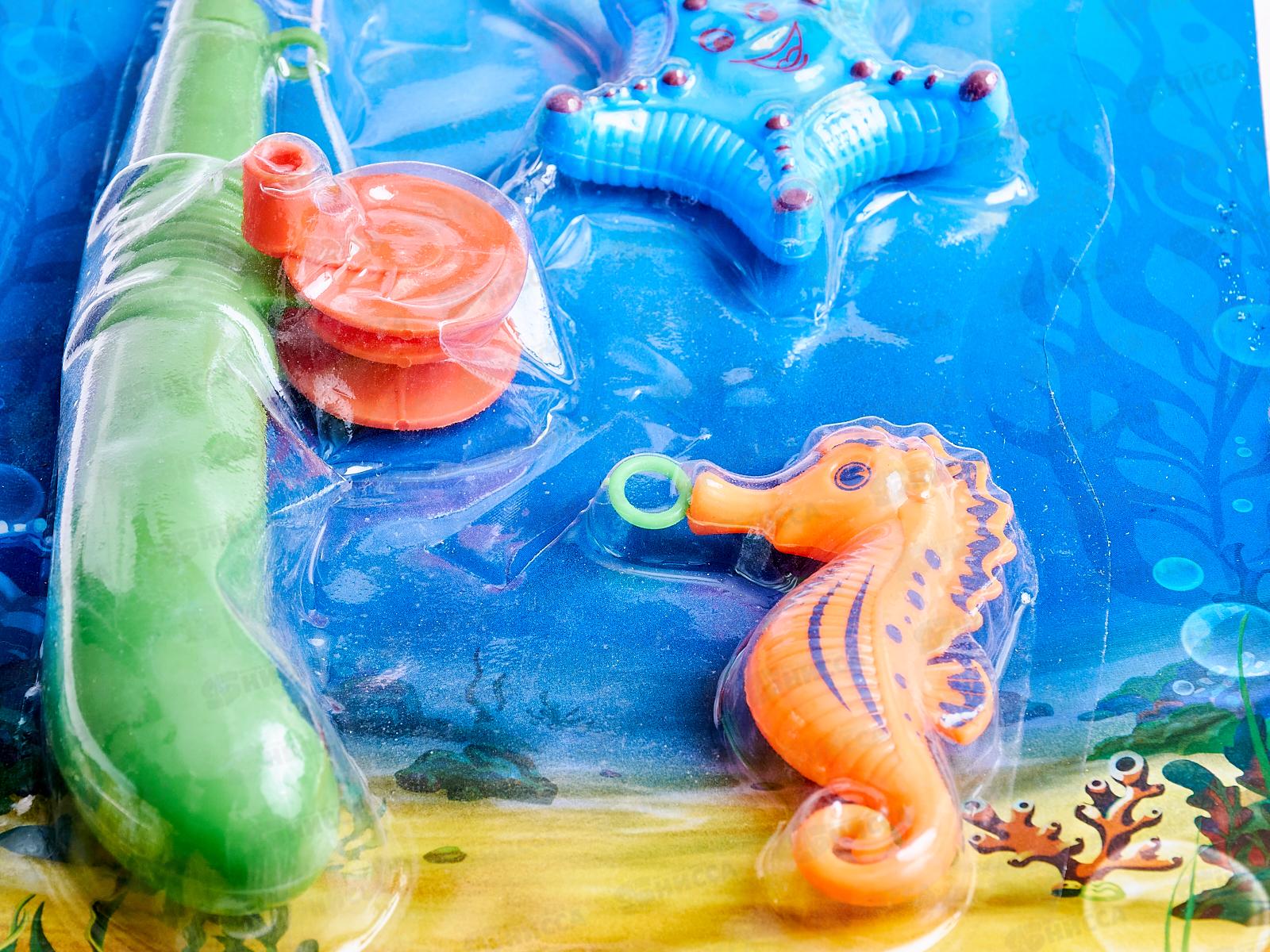 Пластиковая рыбалка позволит малышу заняться увлекательной ловлей морских обитателей. Такая увлекательная игра поможет развить координацию движений, ловкость, воображение, внимание и усидчивость. Все детали изготовлены из высококачественного пластика, абсолютно безопасного для детей. В комплект входят 5 предметов: 4 рыбки с принтованным окрасом, 1 удочка. Упаковано в на блистере.