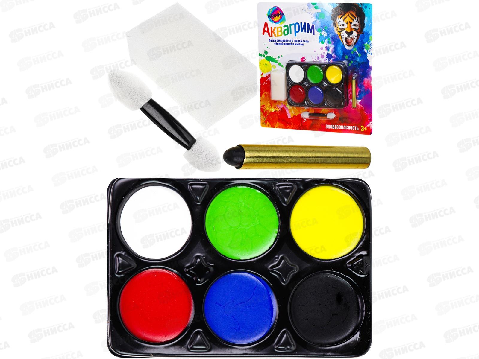 Набор аквагрима для детей (6цветов, карандаш, спонж, аппликатор) КС-4624