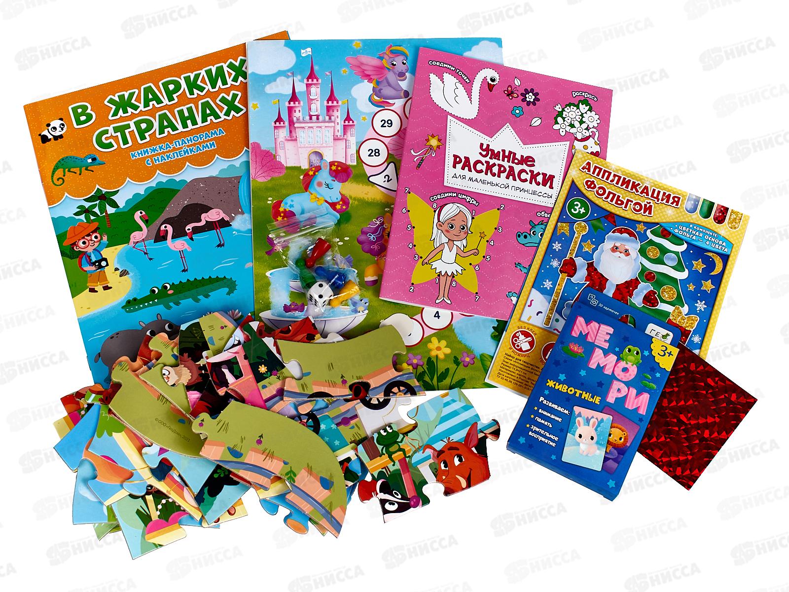 Комплектация: набор для аппликации, раскраска, фигурный пазл, игра-ходилка, книжка с накл