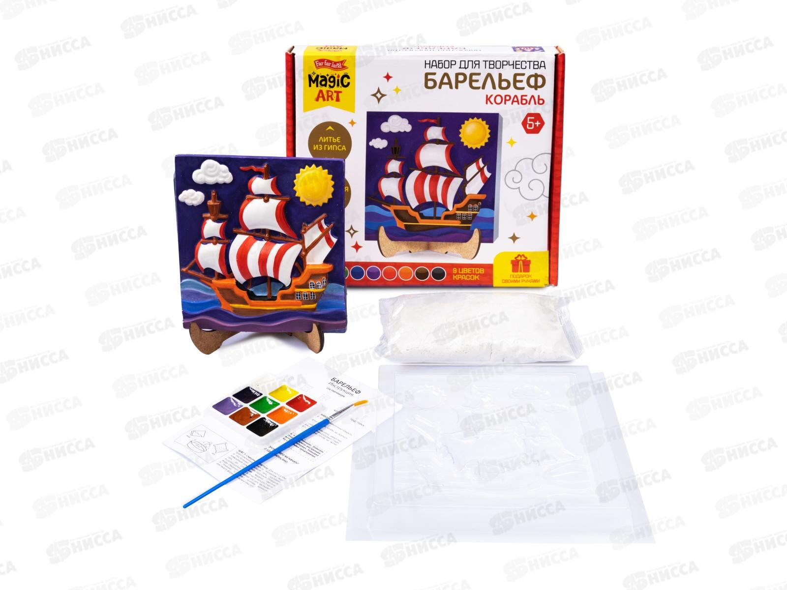 С помощью этого набора для творчества вы создадите барельеф с изображением "Корабля". Он станет необычным подарком для друзей и близких и придаст особый колорит любому интерьеру. В процессе работы с гипсом ребёнок развивает моторику, точность движений, усидчивость, а в процессе раскрашивания - свой художественный талант и эстетический вкус.