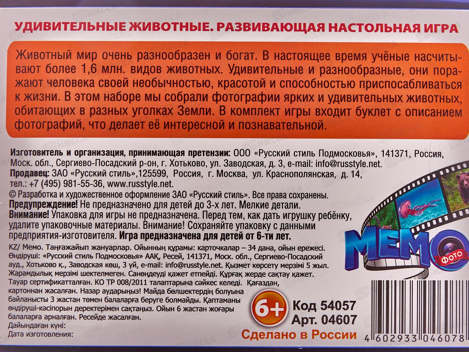 Фото-мемо "Удивительные животные" 34 карточка, 04607