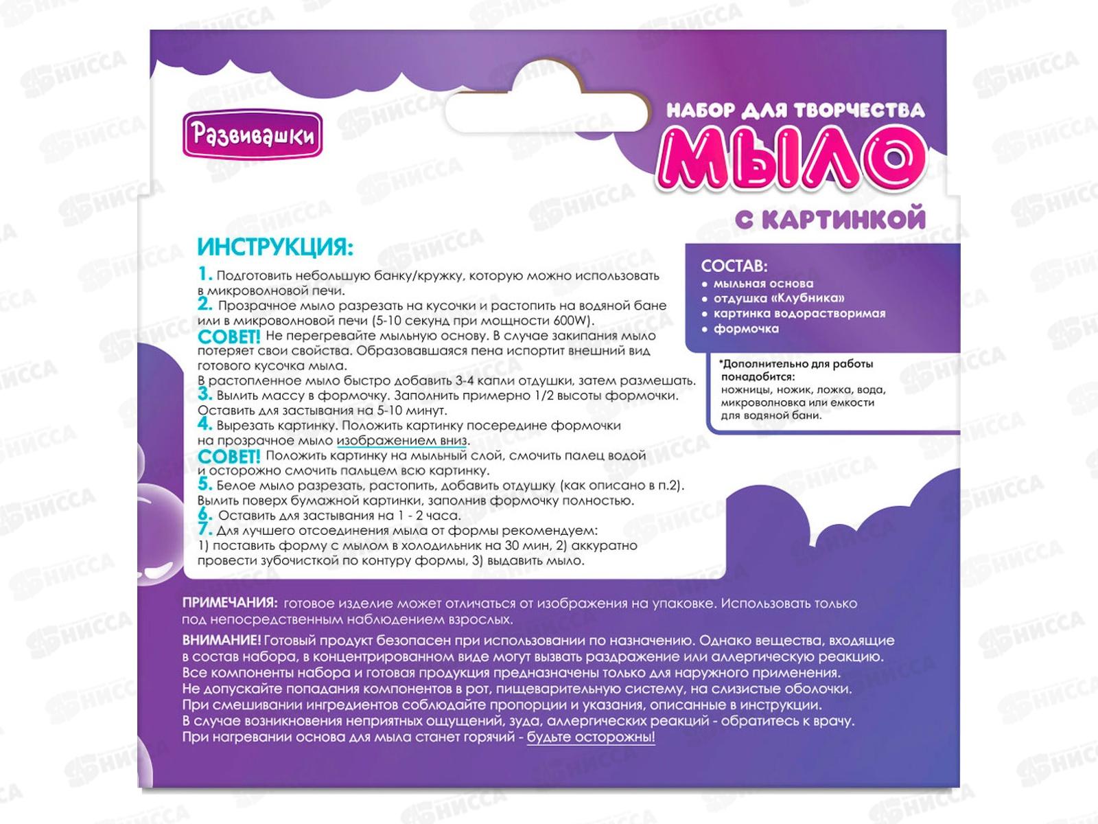 Изготовление мыла – процесс не только увлекательный и интересный, но и развивающий художественное мышление, наблюдательность, терпение и аккуратность. С помощью этого набора вы сможете создать ароматное мыло с яркой картинкой в домашних условиях. В наборе есть все необходимое для творческого мыловарения.