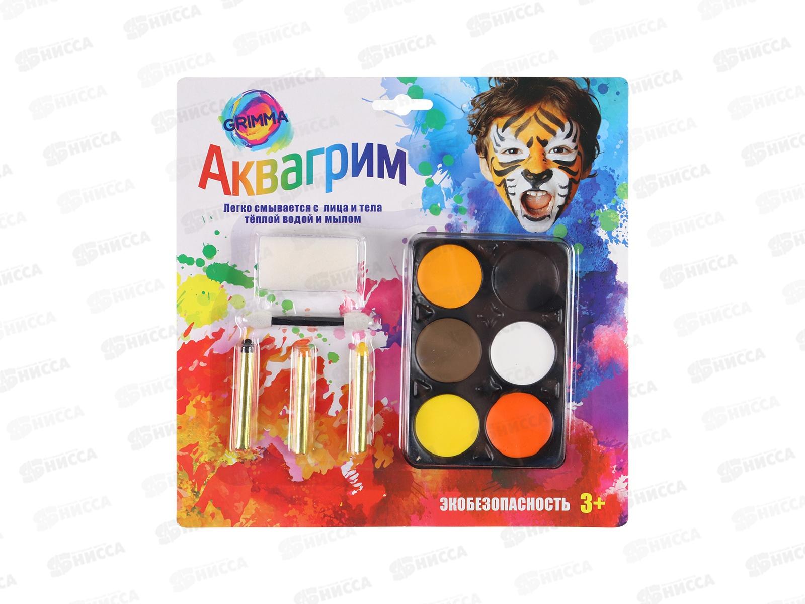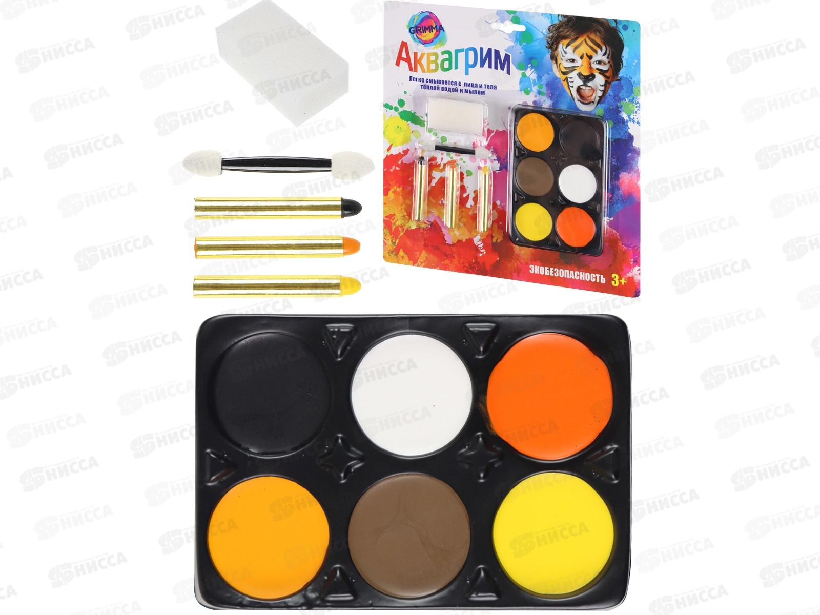 Набор аквагрима для детей (6цветов, карандаш 3штуки, спонж, аппликатор) КС-3597