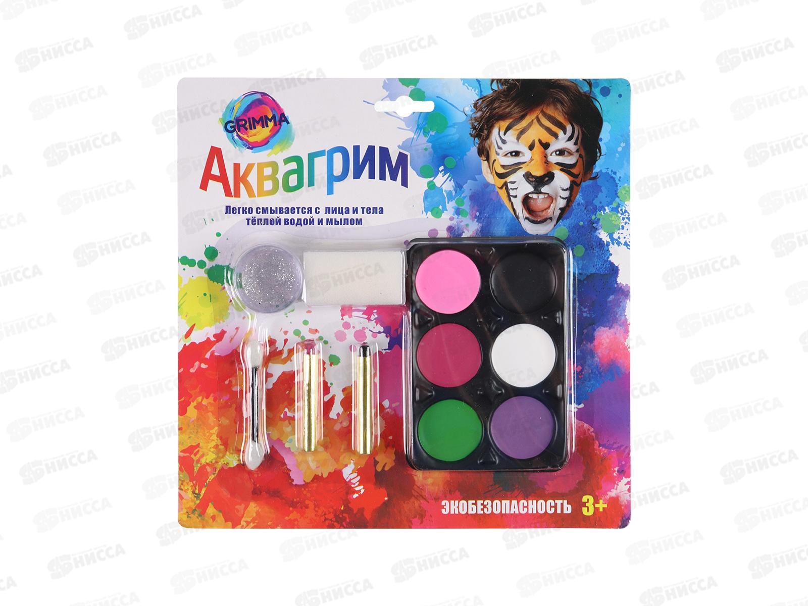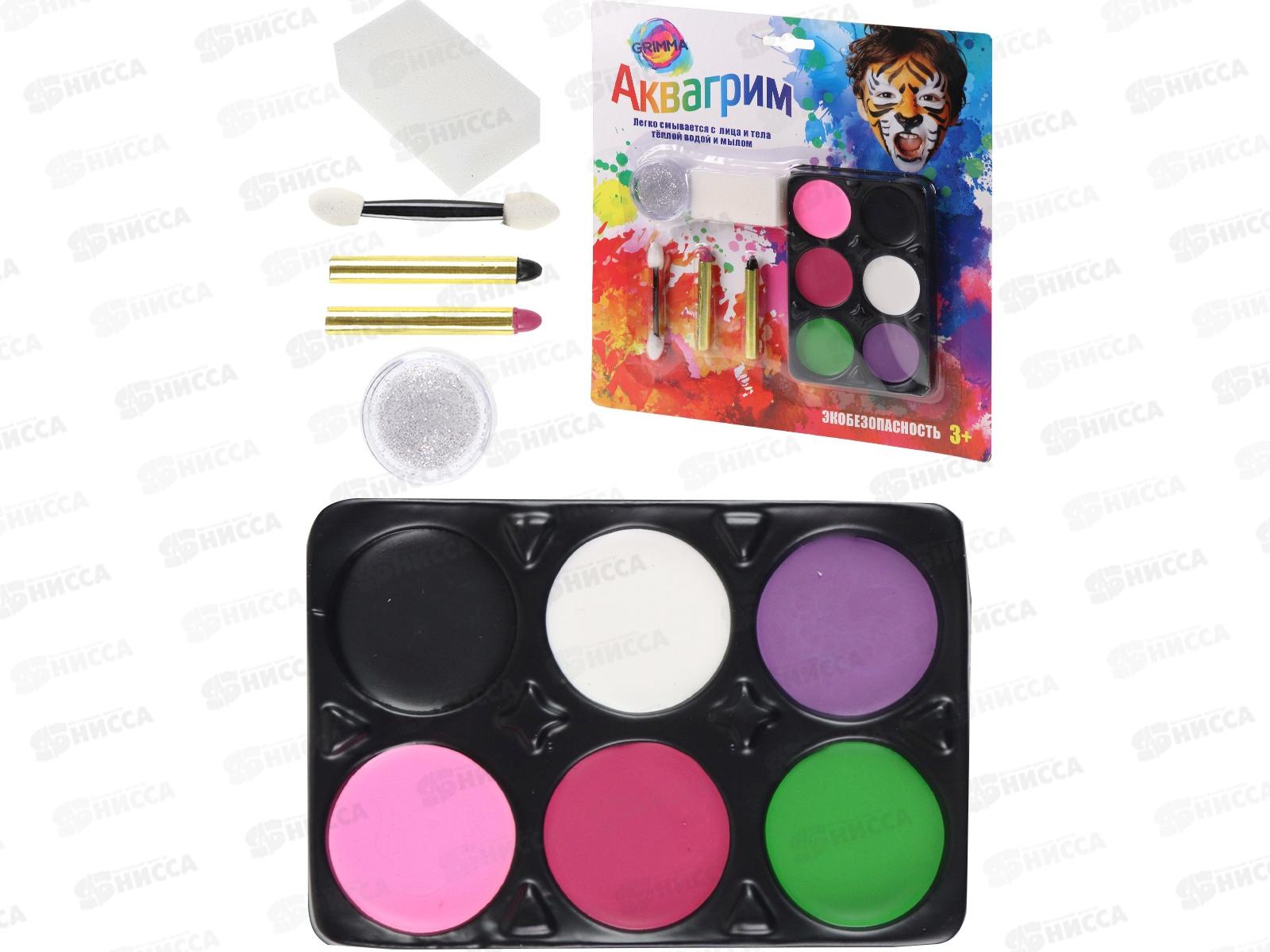 Набор аквагрима для детей (6цветов, карандаш 2штуки, спонж, аппликатор) КС-3596