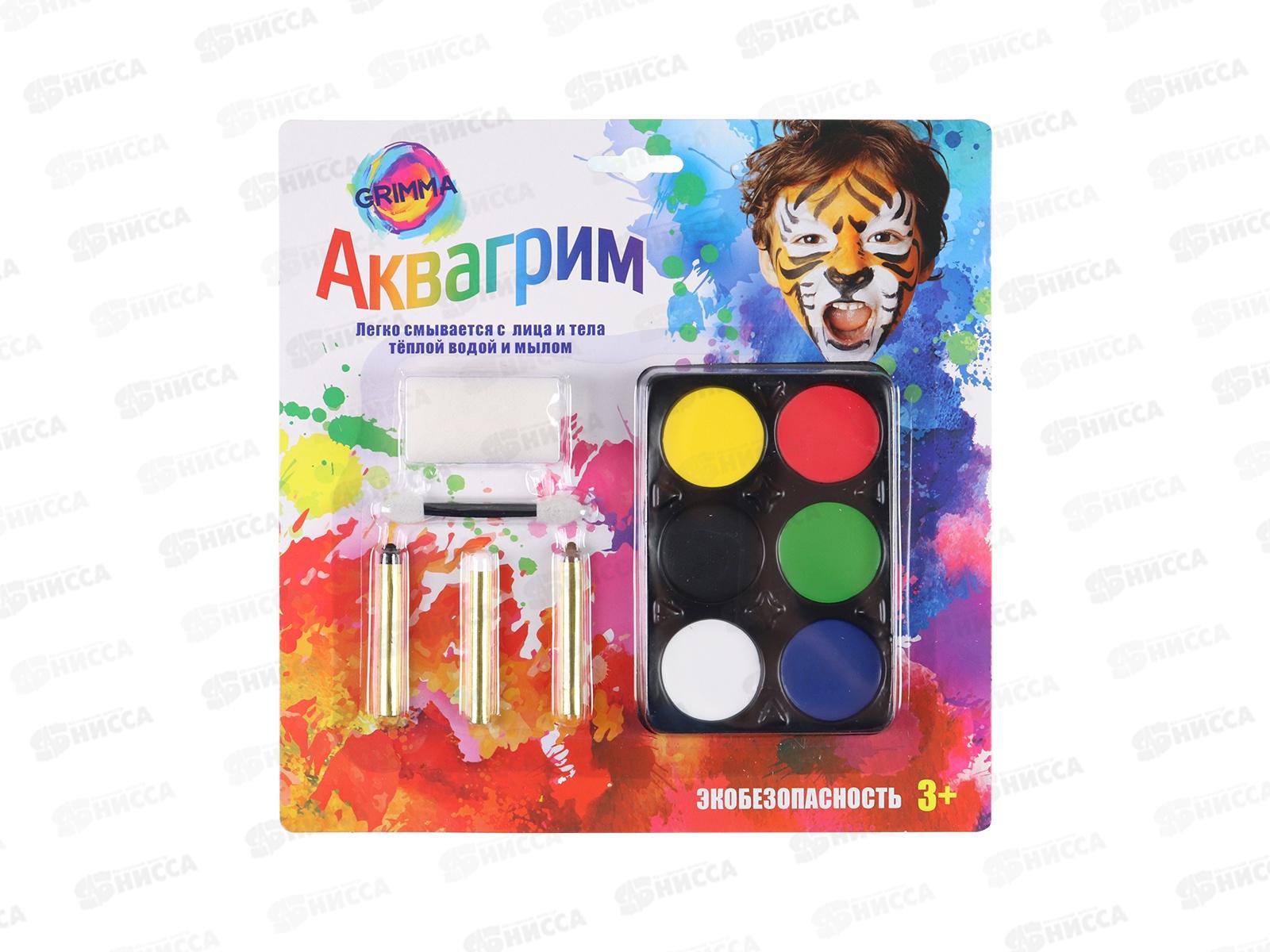 Набор аквагрима поможет украсить любой детский праздник или театральную постановку! С ним будет легко фантазировать и украшать лица рисунками, узорами, создавать любой образ. Краски легко наносятся и смываются, безопасны для детской кожи. В комплекте: 6 цветов (красный, зелёный, ярко-синий, жёлтый, чёрный, белый), 3 карандаша (чёрный, белый, коричневый), 1 спонж и 1 аппликатор.