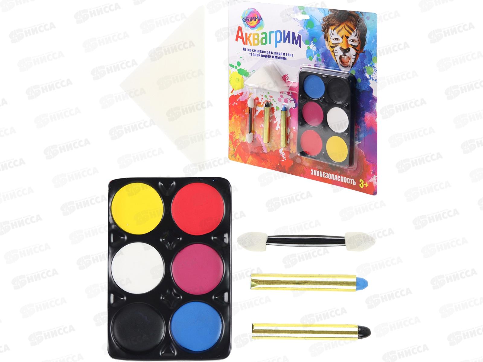 Набор аквагрима для детей (6цветов, карандаш 2штуки, спонж, аппликатор) КС-3595