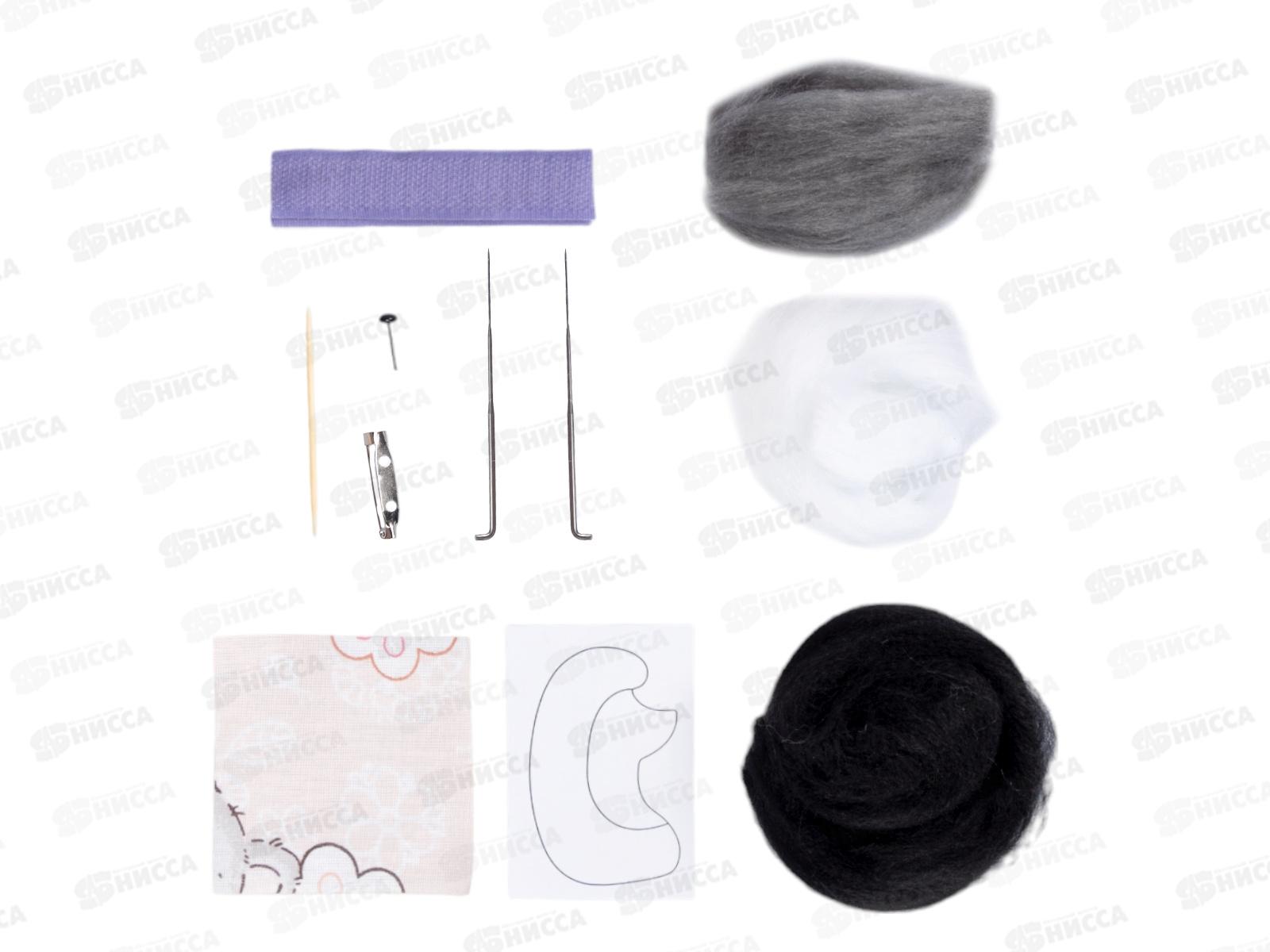Комплектация: шерсть, шаблон, 2 иглы для валяния, 1 глаз, основа, зубочистка, лента-липуч