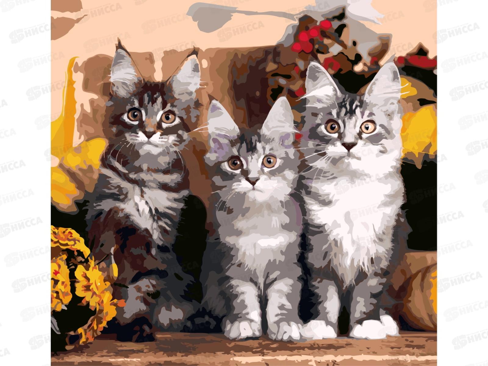 Холст с красками 40х40см Внимательные котята, Х-5620